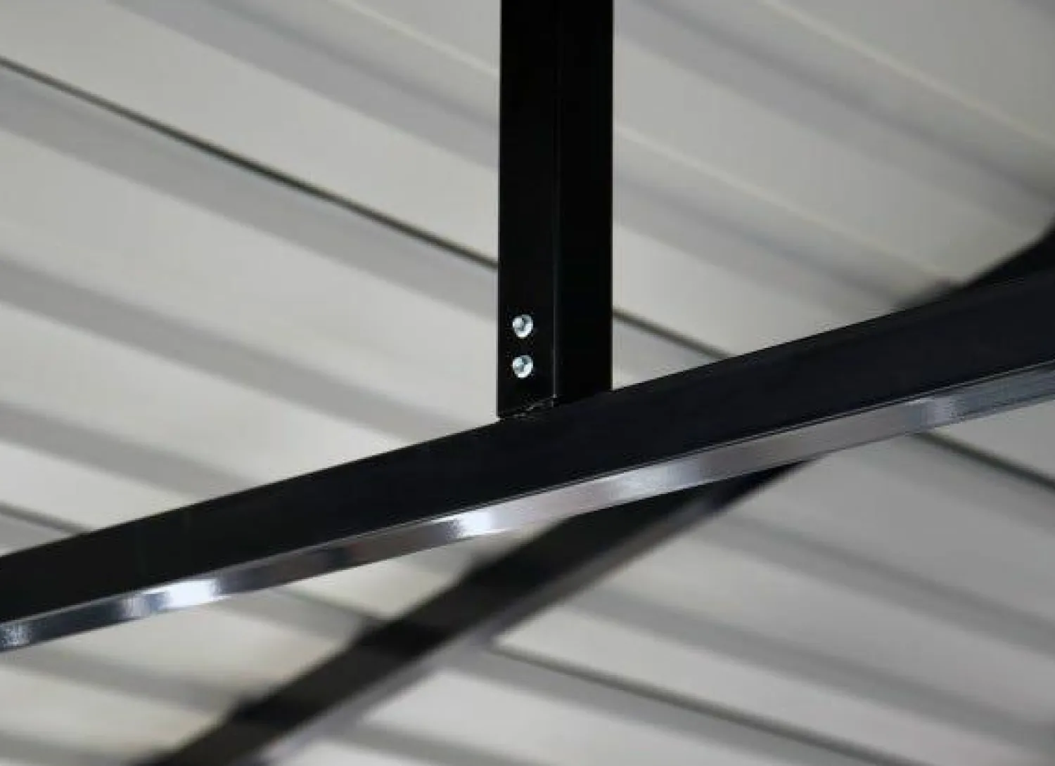 - Roof in an attractive charcoal finish, with a black powder coated steel frame