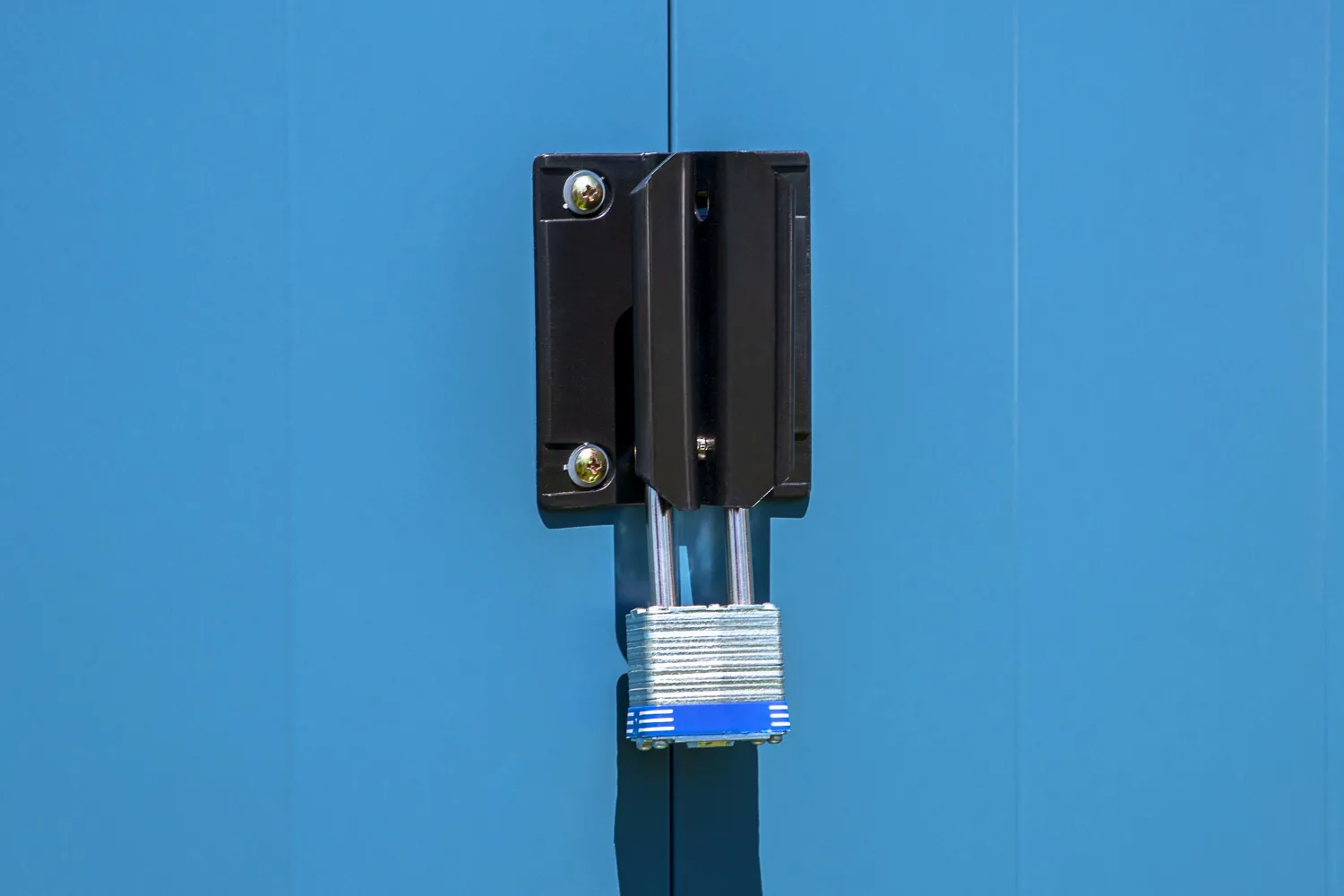 - Pad lockable sliding doors offer security and sit on large glides that prevent sticking and derailing
