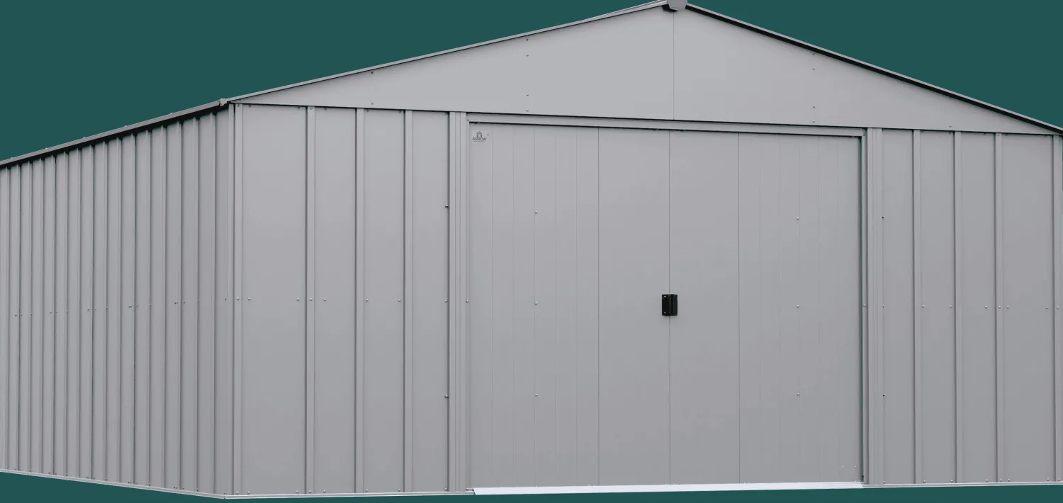 Arrow Metal Sheds-Classic 14 x 14 x 7 ft Flute Grey Steel Storage Shed