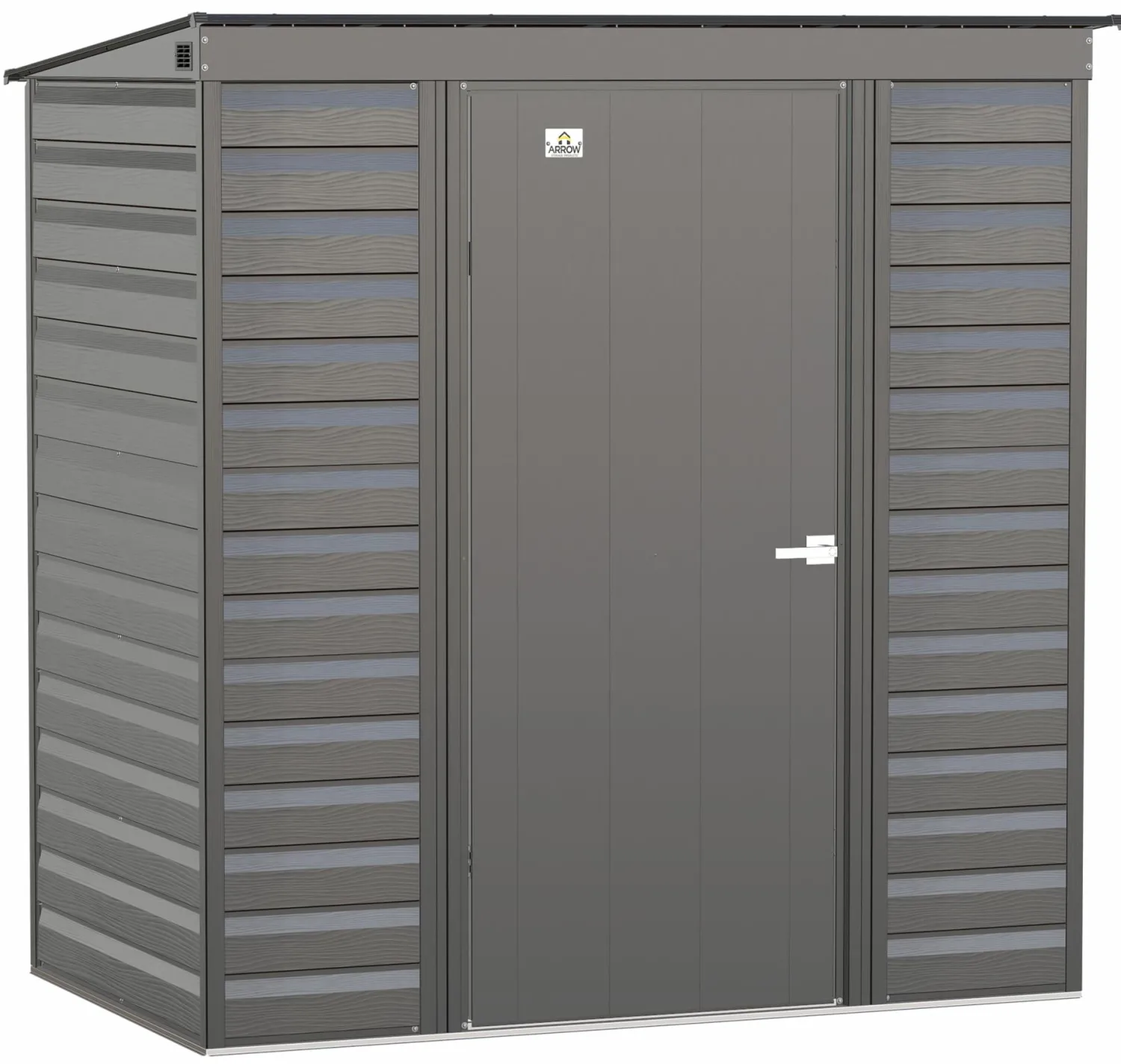 The Arrow line of strong, sturdy steel storage sheds is a pleasant addition to your backyard. Made with galvanized steel that is treated to provide long-term protection against corrosion and rust, Arrow sheds are engineered to protect your stored items from the elements. Inside, the 71 in. walls provide extra headroom, vertical storage space, and added entryway clearance. That makes it great for storing ladders, rakes, pole saws, and anything you want to pile high. The Arrow line also has a pent style roof to prevent pooling of rainwater and debris, built-in air vents for better circulation, and locking door handles for security. It also has a smooth, strong Sherwin-Williams Paint Finish that protects it from the elements and gives the steel extra protection from rust and corrosion.
