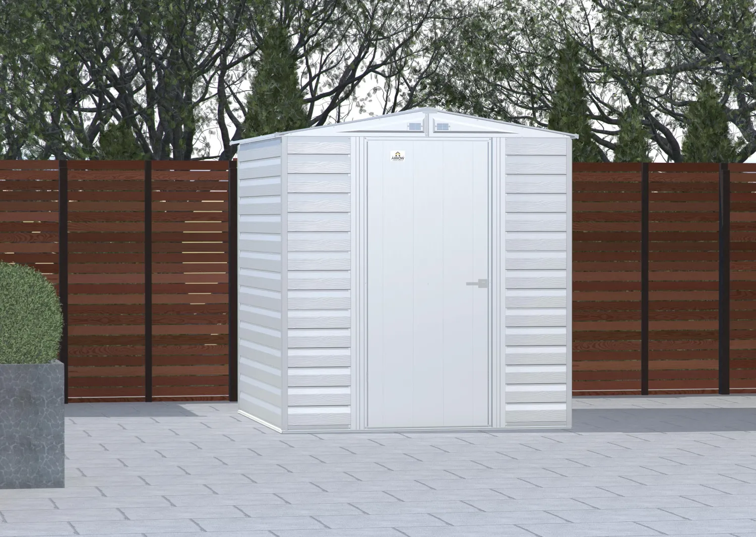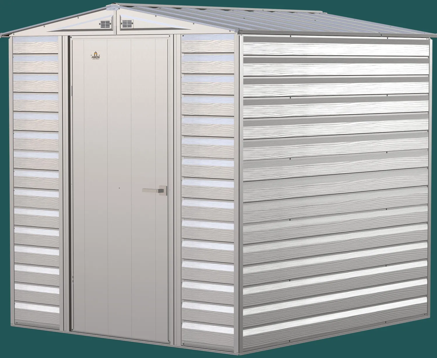 The Arrow line of strong, sturdy steel storage sheds is a pleasant addition to your backyard. Made with galvanized steel that is treated to provide long-term protection against corrosion and rust, Arrow sheds are engineered to protect your stored items from the elements. Inside, the 71 in. walls provide extra headroom, vertical storage space, and added entryway clearance. That makes it great for storing ladders, rakes, pole saws, and anything you want to pile high. The Arrow line also has a pitched roof to prevent pooling of rainwater and debris, built-in air vents for better circulation, and locking door handles for security. It also has a smooth, strong Sherwin-Williams Paint Finish that protects it from the elements and gives the steel extra protection from rust and corrosion.