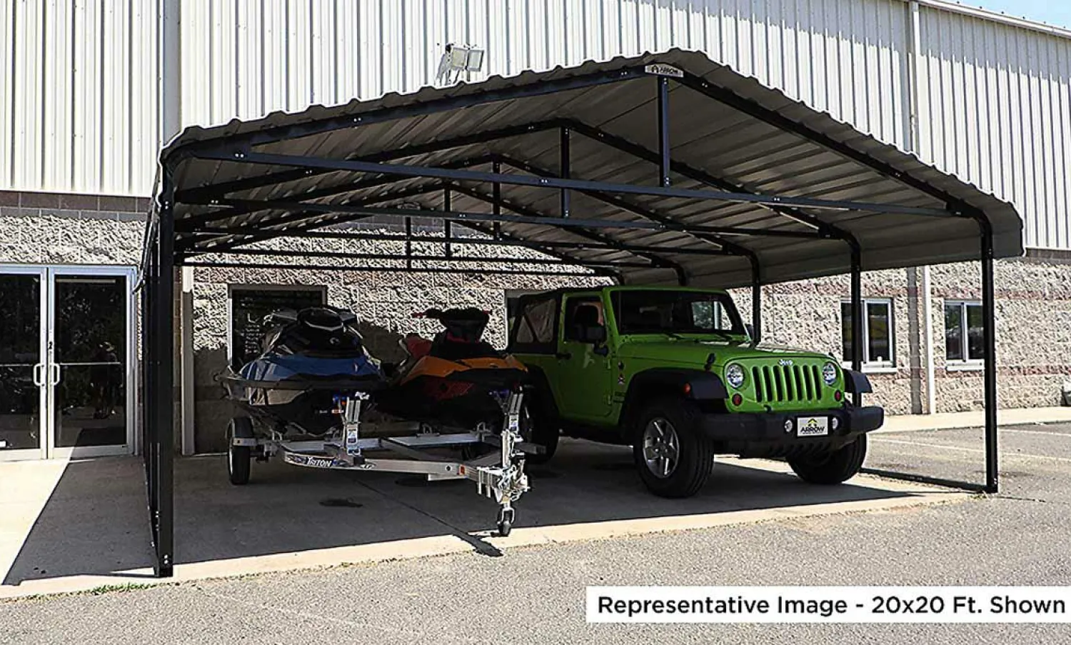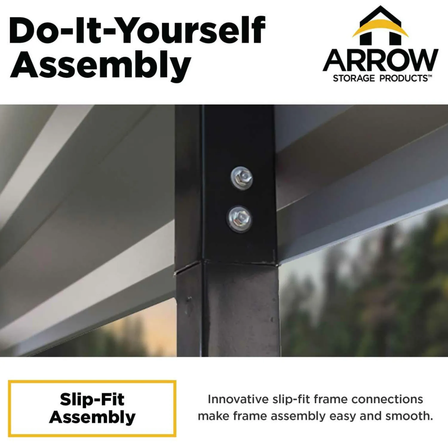 The all-steel Carport from Arrow is a convenient, all-weather shade and shelter solution that’s versatile and practical. Use the Carport to shade your vehicle, truck, ATV, outdoor equipment, rest areas or picnic areas. Great for storing boats, picnic and outdoor furniture and summer toys in the off-season. Each Arrow Carport is wind and snow load rated Carport, meaning they are designed to take on tough weather conditions and able to stand up to accumulated snow fall. Its galvanized steel roof is made to protect against corrosion, rust and the elements and features an attractive Charcoal roof. The Carport is assembled on our tough all-steel, powder coated 2 in. tube frame, made to reinforce stability and strength in the structure. The premium powder coating provides corrosion and rust resistance. Easy to install, the Carport comes with slip-fit connections with pilot holes and self-drilling screws making this unit easy to build straight out of the box.