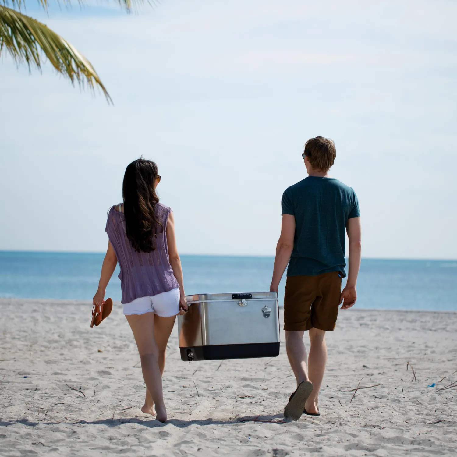 The Stainless Steel Cooler – 54 Qt. is an attractive and convenient way to keep drinks cold and nearby during your next outing. The 54 quart stainless steel cooler is a must for any outdoor event. Fits up to 85 cans and includes a bottle opener on the side. Easy to carry with rubber grips. Has a stainless steel body and rust-proof drain cap for added convenience. Great for sporting events, tailgating, backyard parties and much more.