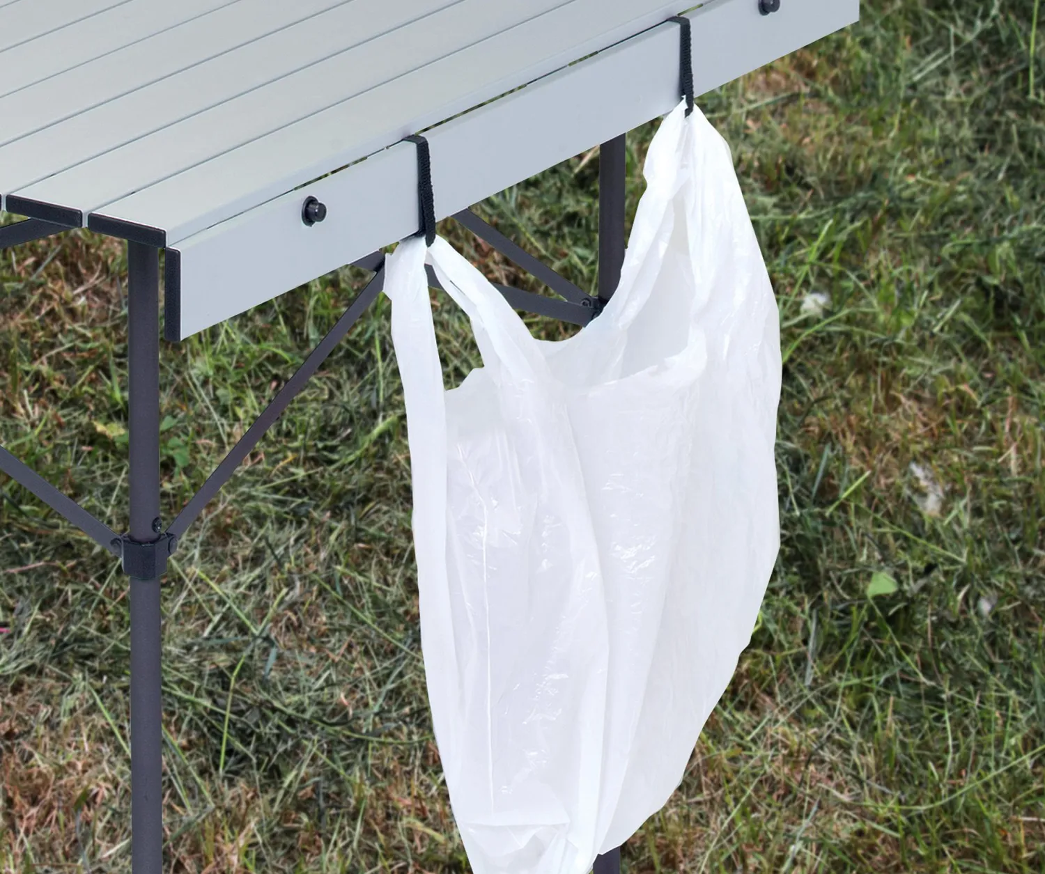 Heat resistant top for the ability to use as a cooking space. Rio exclusive frame peg top for no breakage or denting. Roll-around, peg style top. Lightweight and easy carry. Folds into small carry bag for convenient portability.