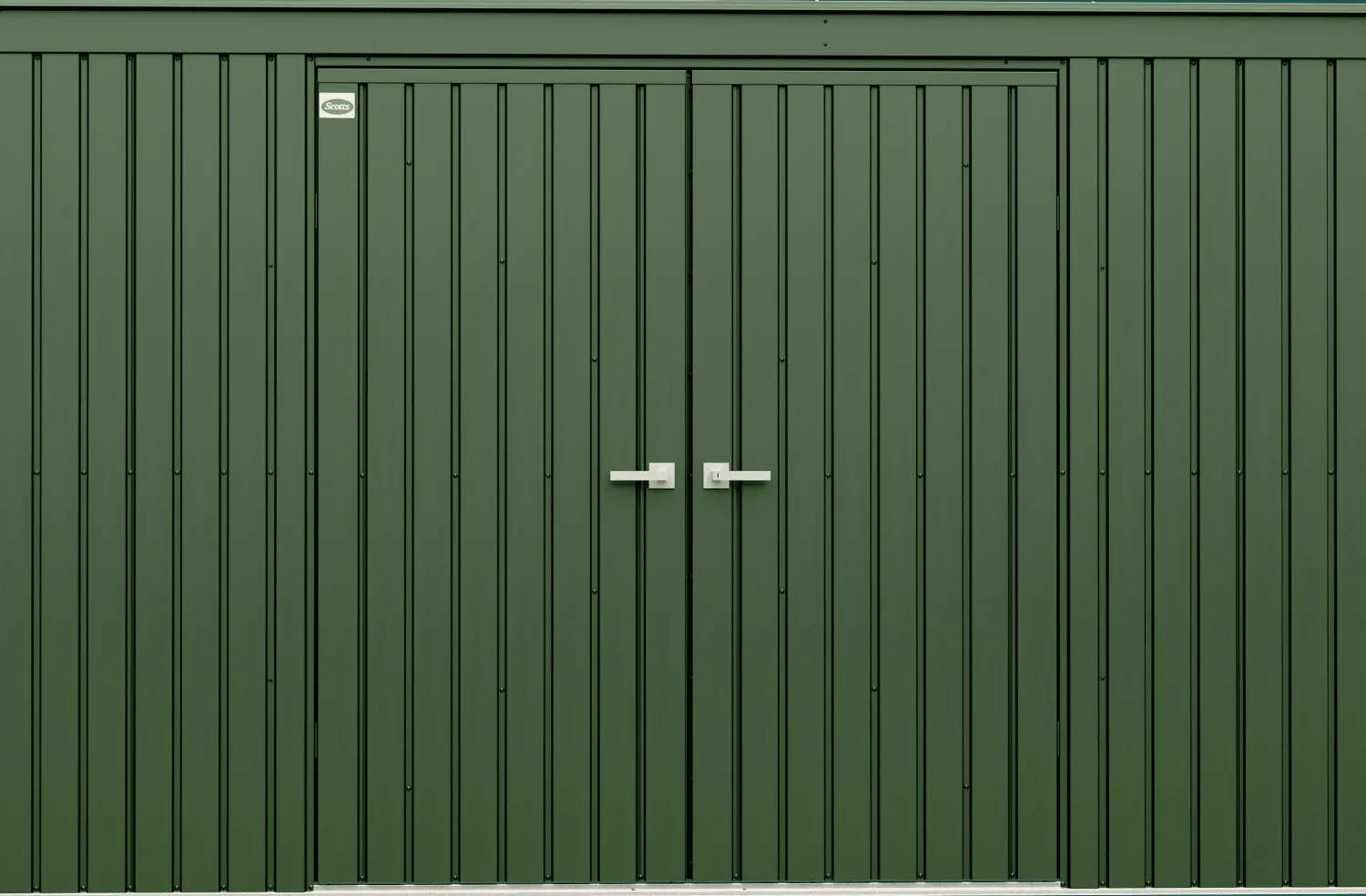 - The contemporary, squared wall panel design of this steel shed gives a modern clean appearance