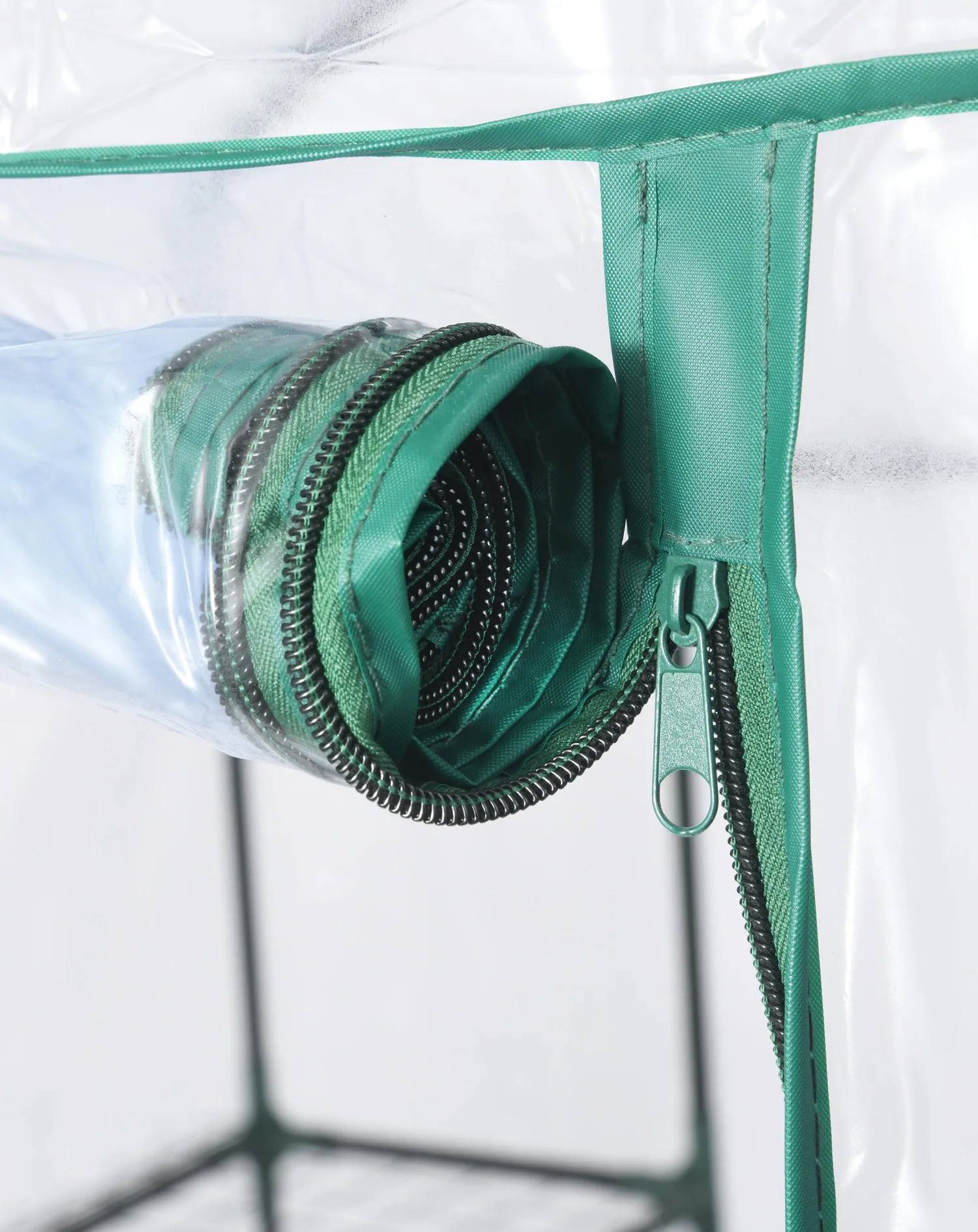 - Double zipper door panel rolls up allowing easy access to plants and seeds