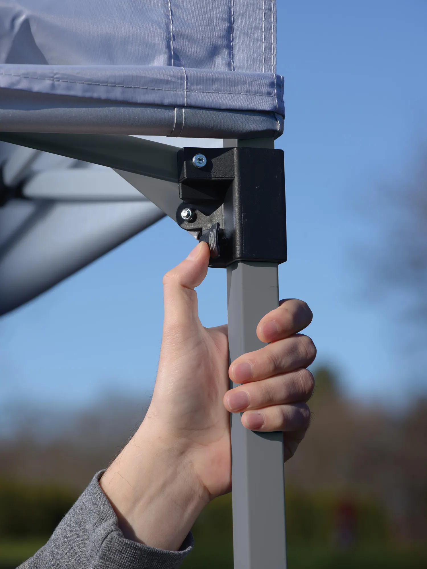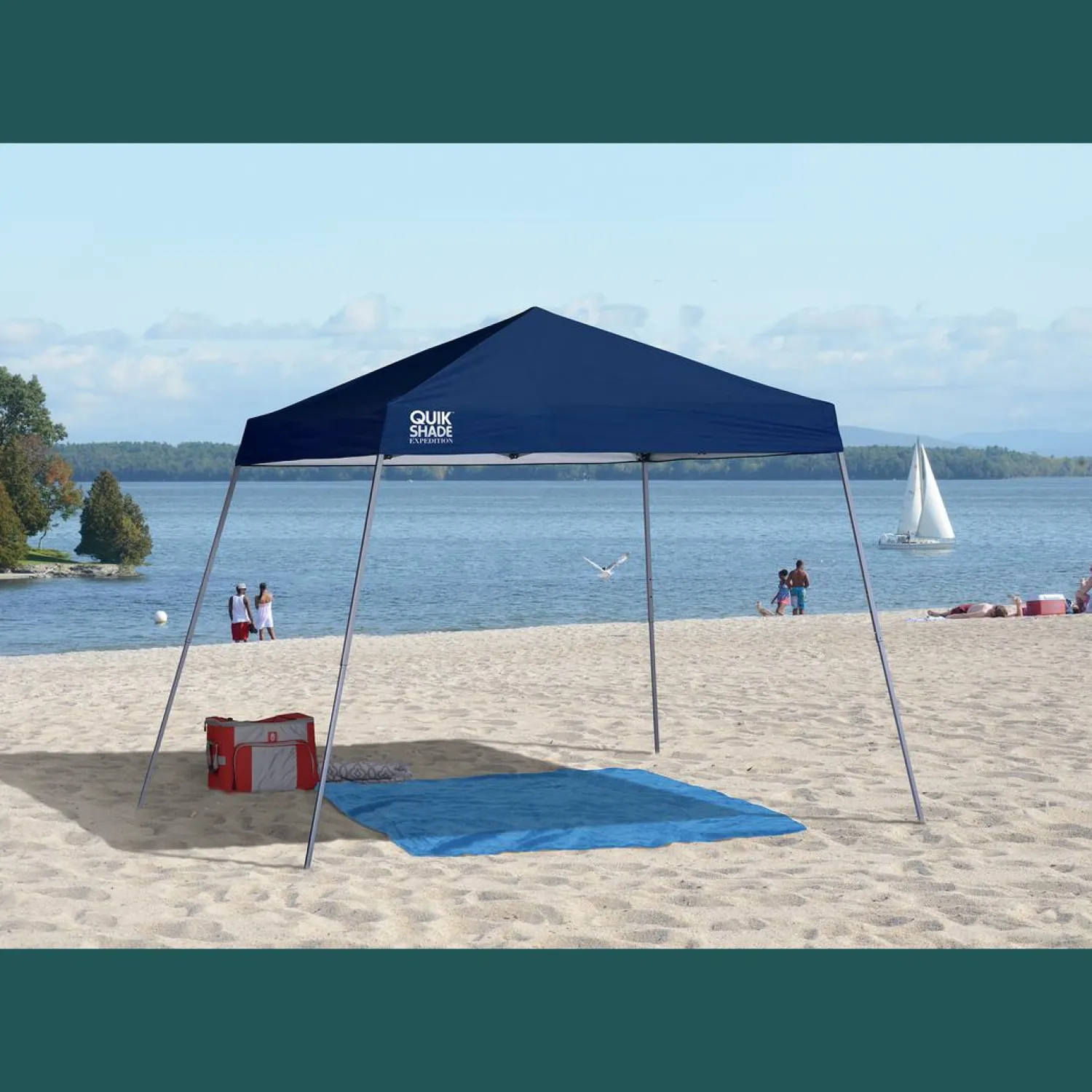 Quik Shade’s slant leg Expedition pop-up canopy tent provides shade under an attractive slant leg canopy. This durable canopy features patented overlapping eaves and thru-bolt reinforced assembly to maintain the structural integrity of your shade. The 150D polyester top with Aluminex gives you 99% UV protection for quality shade at farmer’s markets, sports events, and much more.