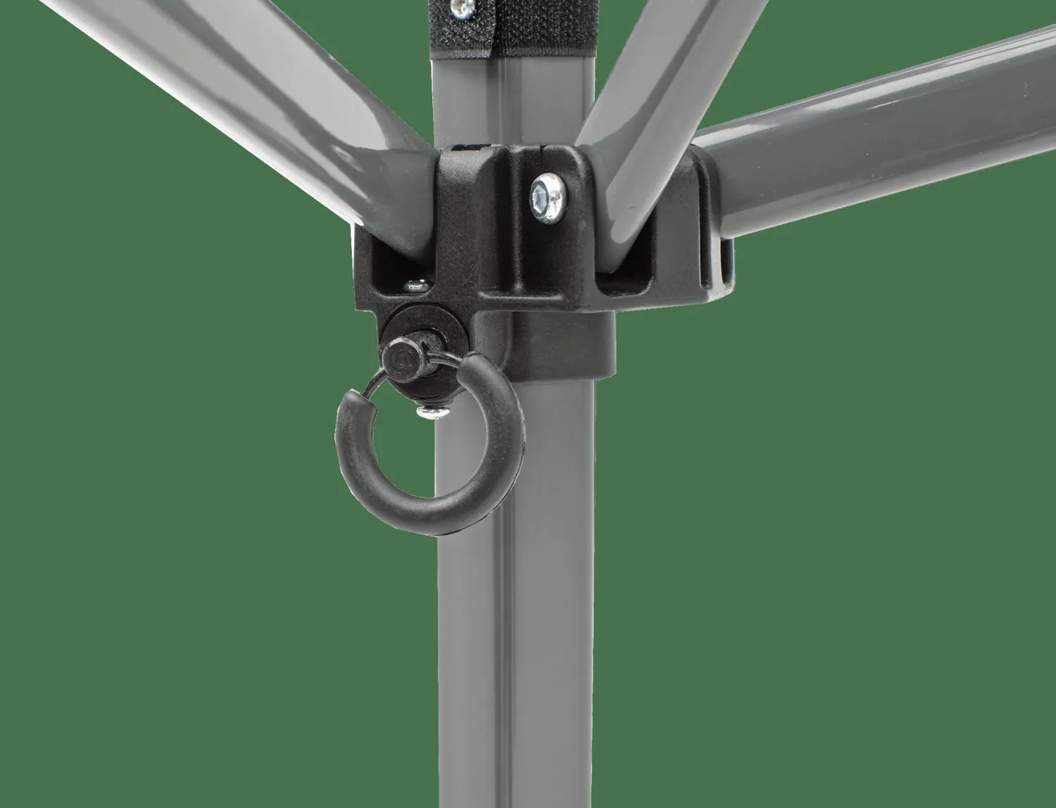 Quik Shade’s Solo Steel 64 Canopy is an attractive slant leg canopy that shades up to 5 people and provides up to 64 sq. ft. of shade. This top of the line, high quality pop-up canopy is portable and made from durable and top quality materials. With infinite height positions, you’ll choose the canopy height that fits your needs. Easy one person assembly!