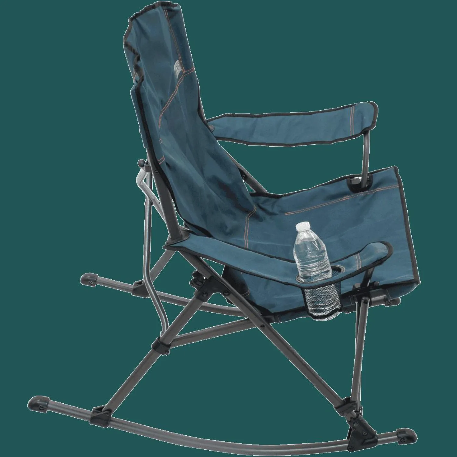 Rock the campground with the new Quad Rocker folding rocking chair. This rugged, portable rocker has a durable lightweight frame and a rugged, waterproof seat, back, and armrests. The soft arm quad rocker has compact design for easy, efficient transportation, and folds nicely for convenient storage in a carry bag. This stylish, tough rocker includes a cup holder that you can use for the beverage of your choice.