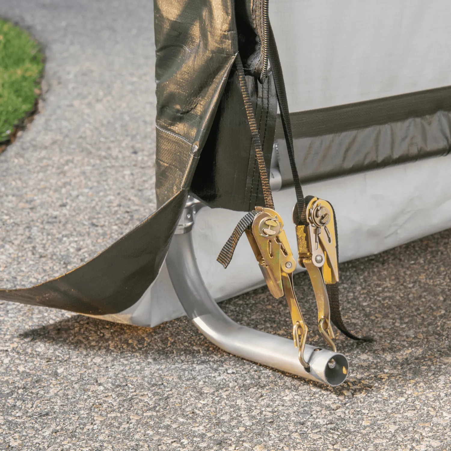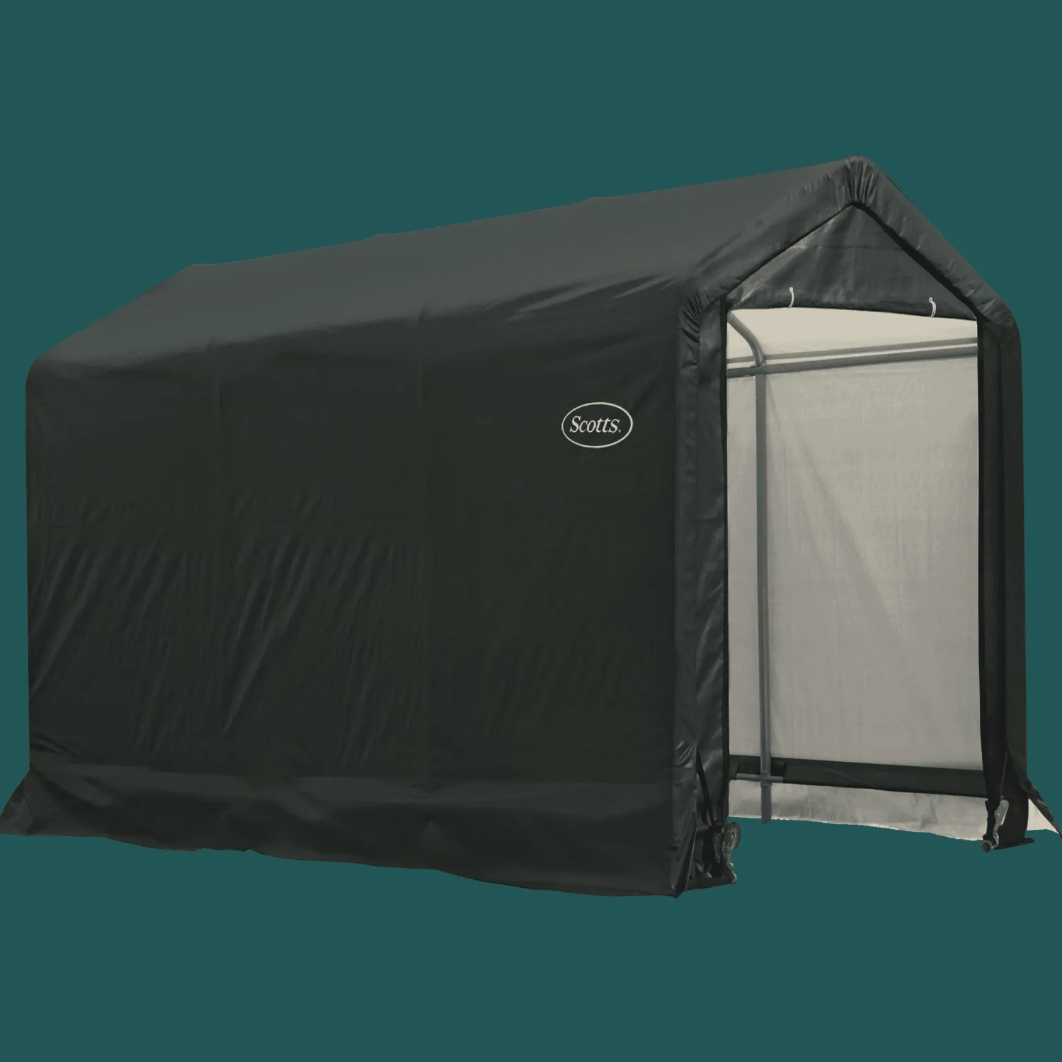 The Scotts Storage Shed has a small footprint and big value when space is at a premium. Great for storing garden tools, mowers, snow blowers, snowmobiles, ATVs, pool items, or anything you need to store out of sight. Scotts Storage Shed is designed for use in every season and can protect your equipment from sunlight, rain, tree sap and more. Win back garage space with an affordable storage solution.