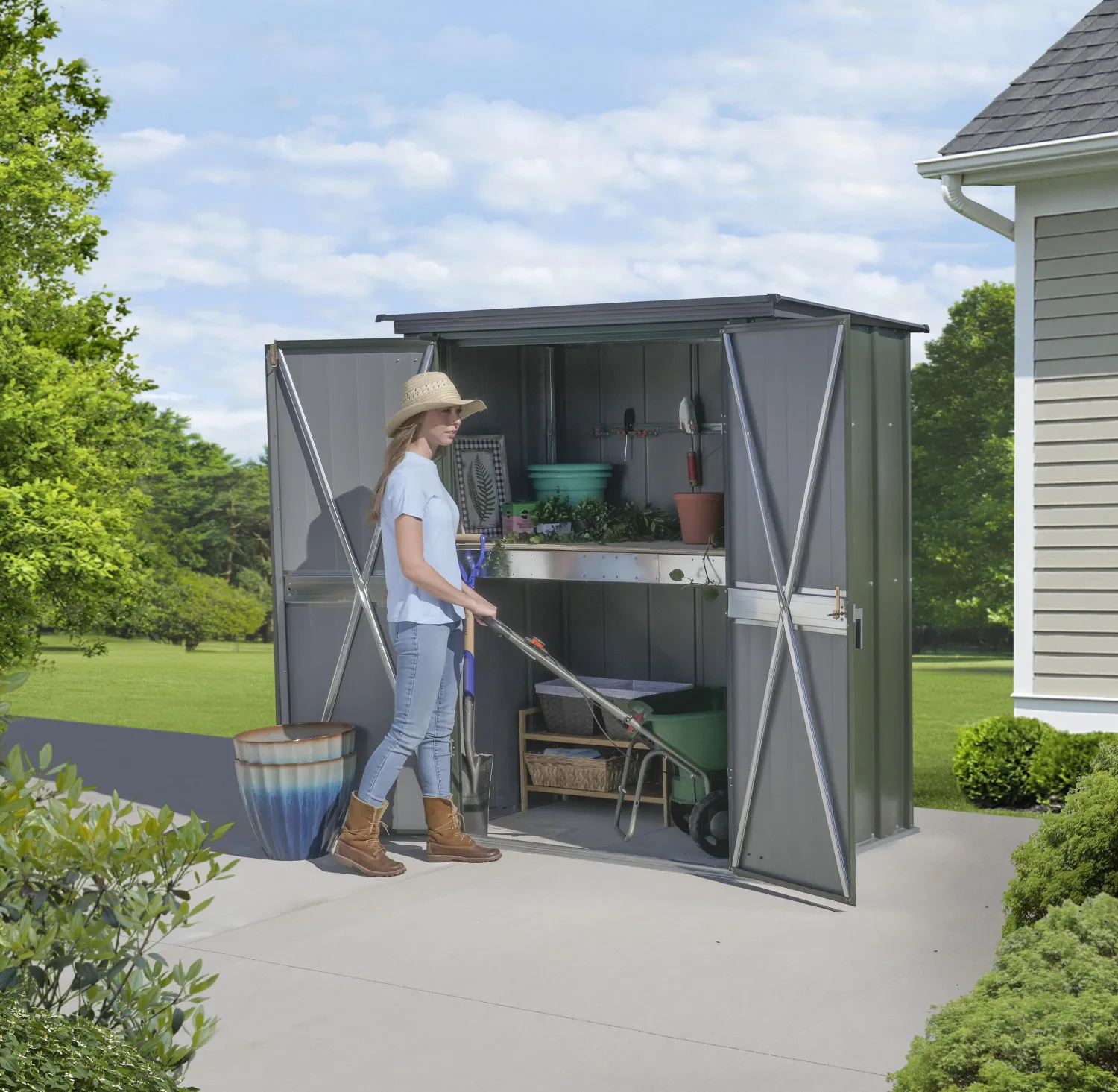 - Tall 6-foot walls allow for leaning taller garden storage items inside the garden shed