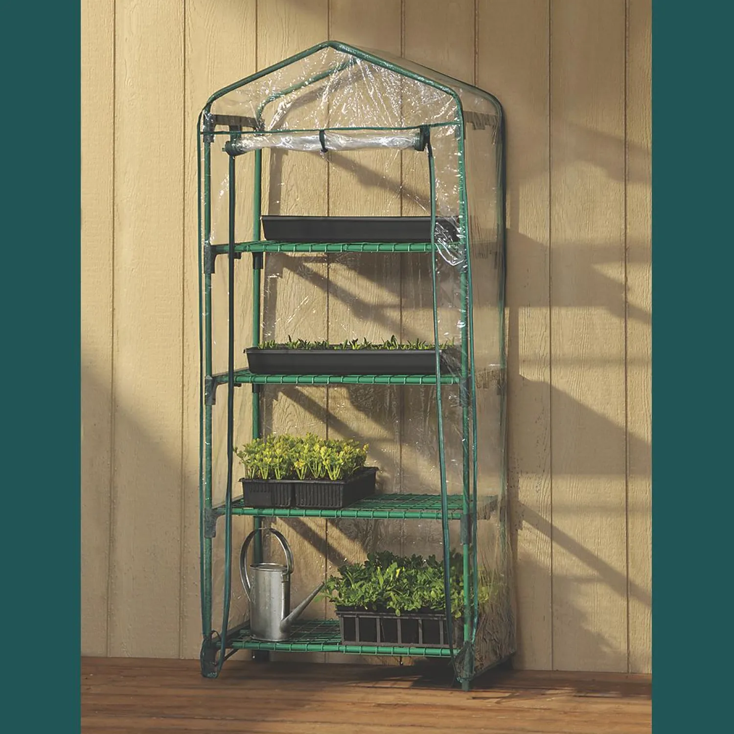 Start seedlings or extend your growing season with the GrowIT 4-Tier Mini Growhouse. This easy-to-assemble, compact greenhouse is constructed with a high-grade steel tubular frame. The clear PVC cover allows a significant amount of light to reach the plants.