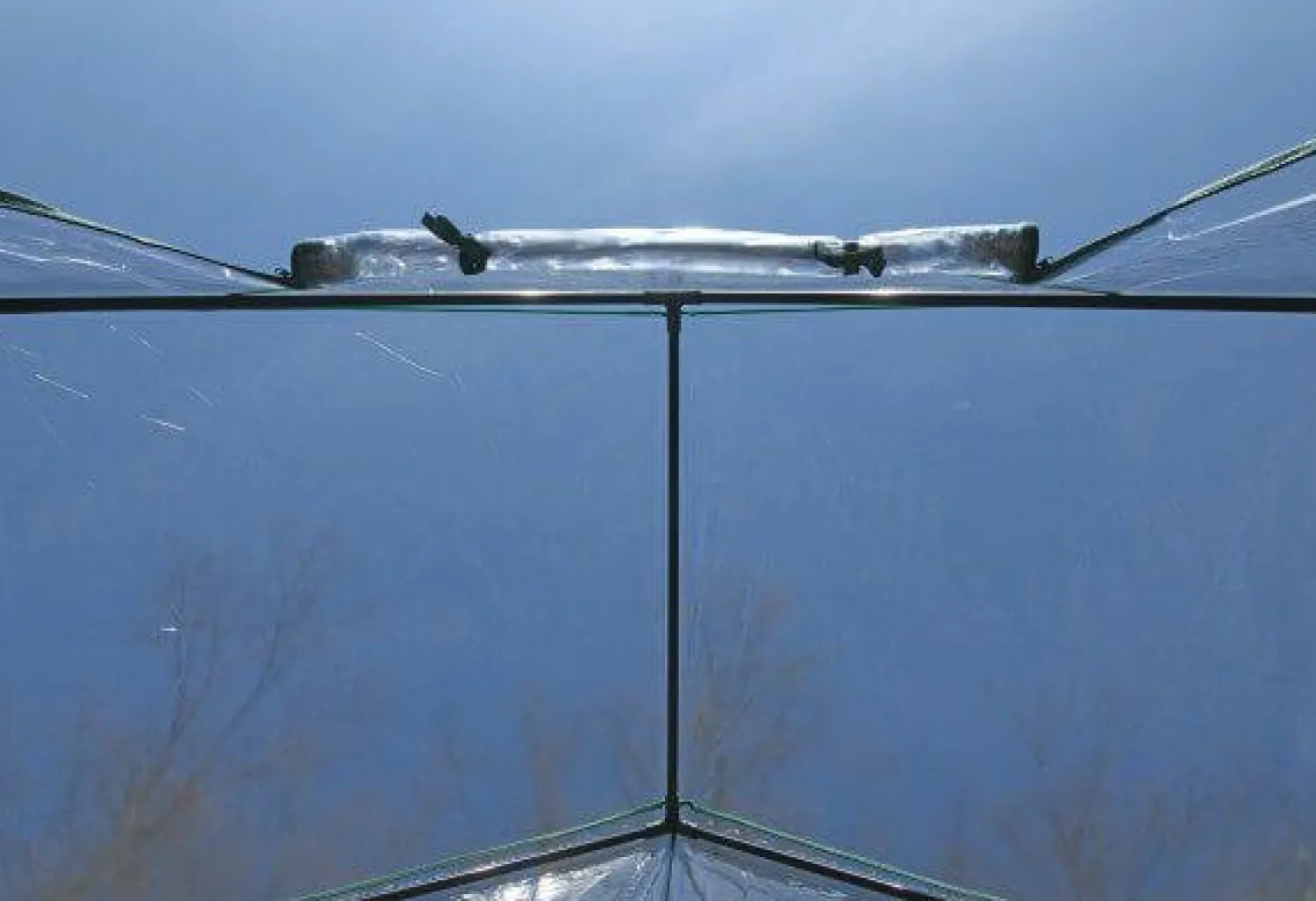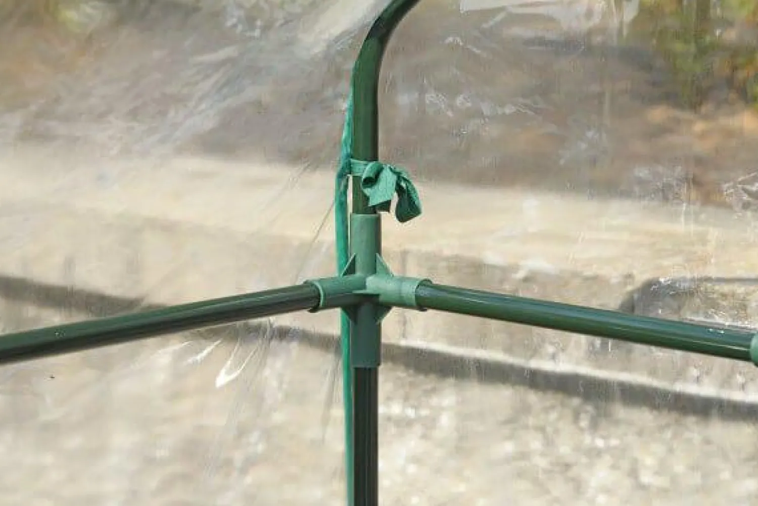 - The greenhouse has a fitted clear PVC cover with integrated tie-downs.nn