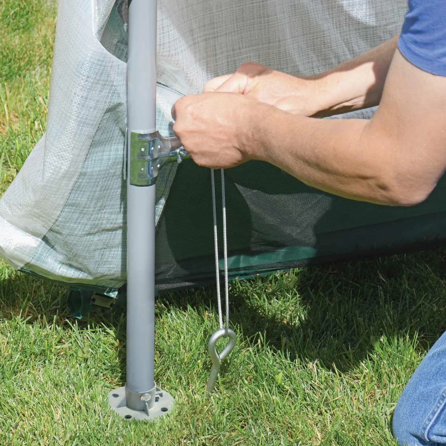 | Included Items | (1) 6′ x 8′ x 6’6″ / 1,8 x 2,4 x 2 m 3-Rib All Steel Frame, (1) Luminate™ 1-Piece Fitted Polyethylene Cover with Double-Zippered Door and Semi-Circular Screens, (4) 15″ / 38,1 cm Auger Anchors, Complete Hardware Kit, Easy Step-by-Step Instructions |