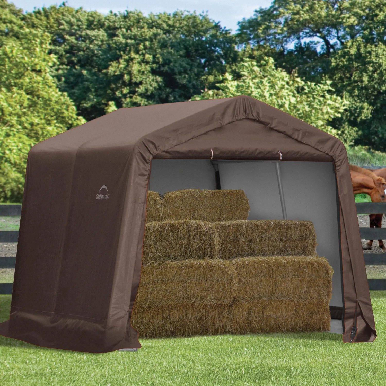 The ShelterLogic 10 x 18 x 8 ft. 3-in-1 loafing shed can be used in the pasture to protect horses, goats, pigs, and more from the elements. Additionally, it can be used to keep agriculture supplies such as feed, food, and seed dry. What’s more, the loafing shed can be used to protect and store farm equipment and tools.