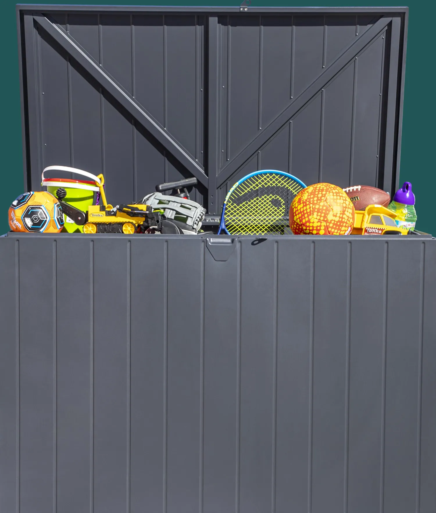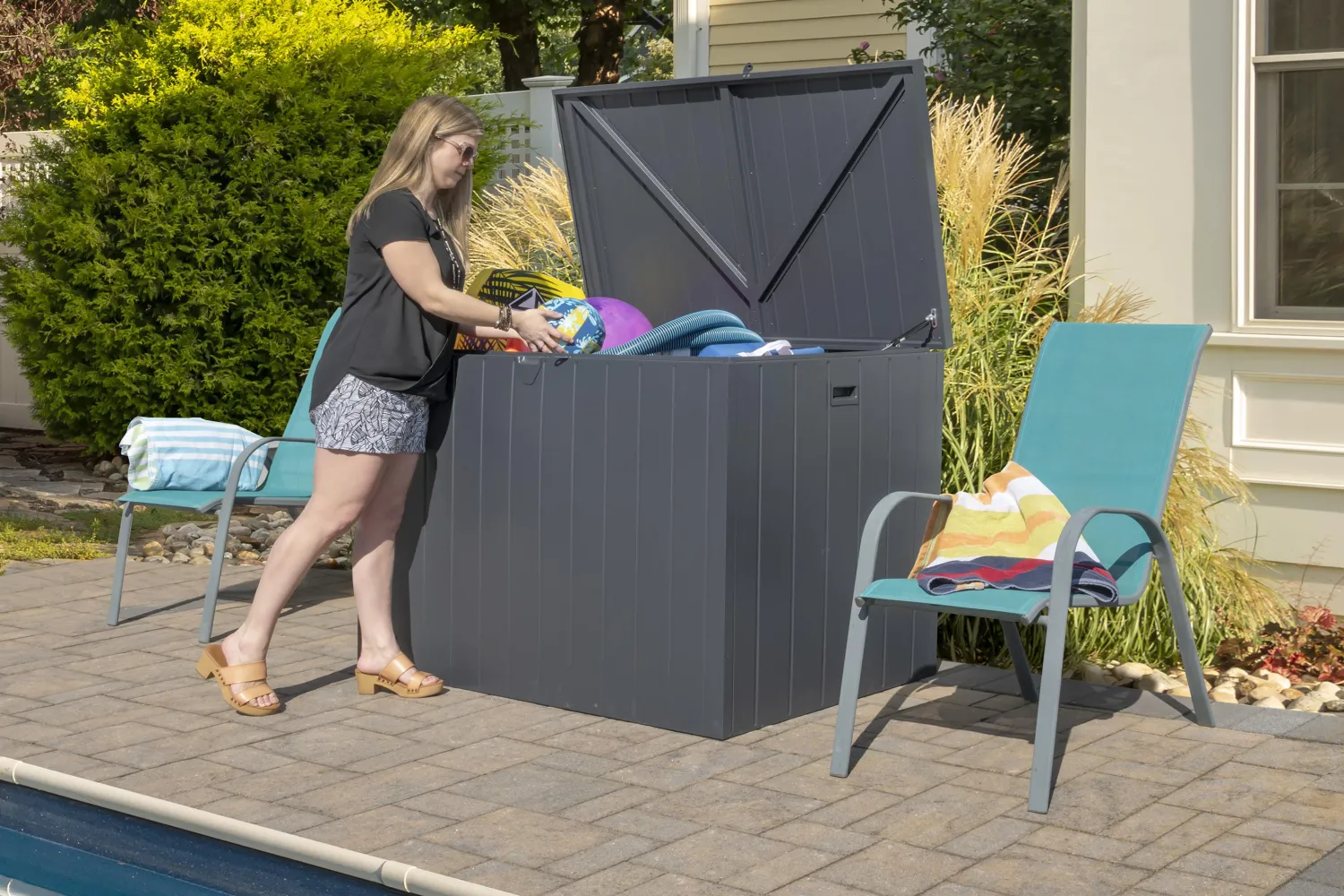 - Handles on the sides of the deck box allow you to effortlessly move it from your deck to the patio to the pool, or wherever you’d like to store it