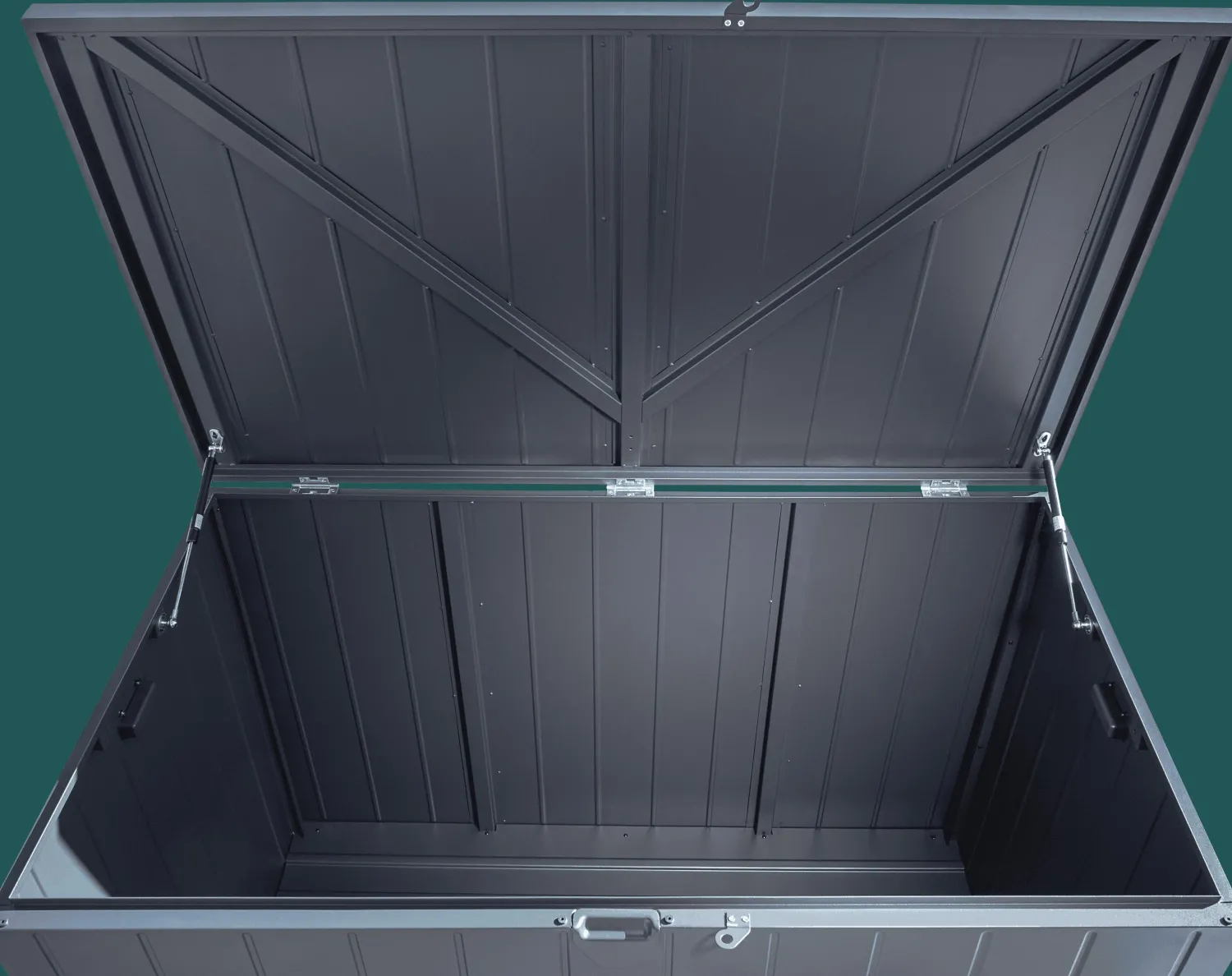 - The HDG steel has a powder coated finish that prevents rust and corrosion and keeps your deck box looking new
