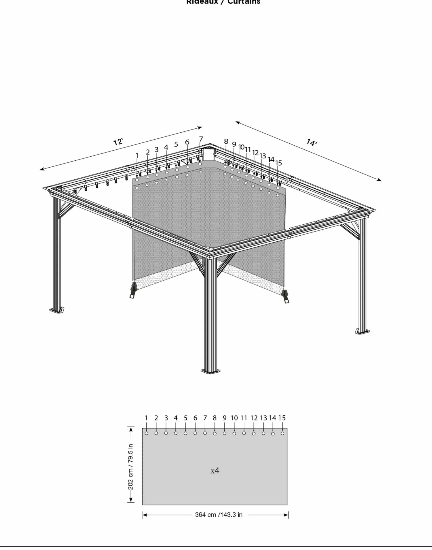 - INCLUDED COMPONENTS: Hooks to hang the curtains to the structure. Zippers to enclose the gazebo for privacy