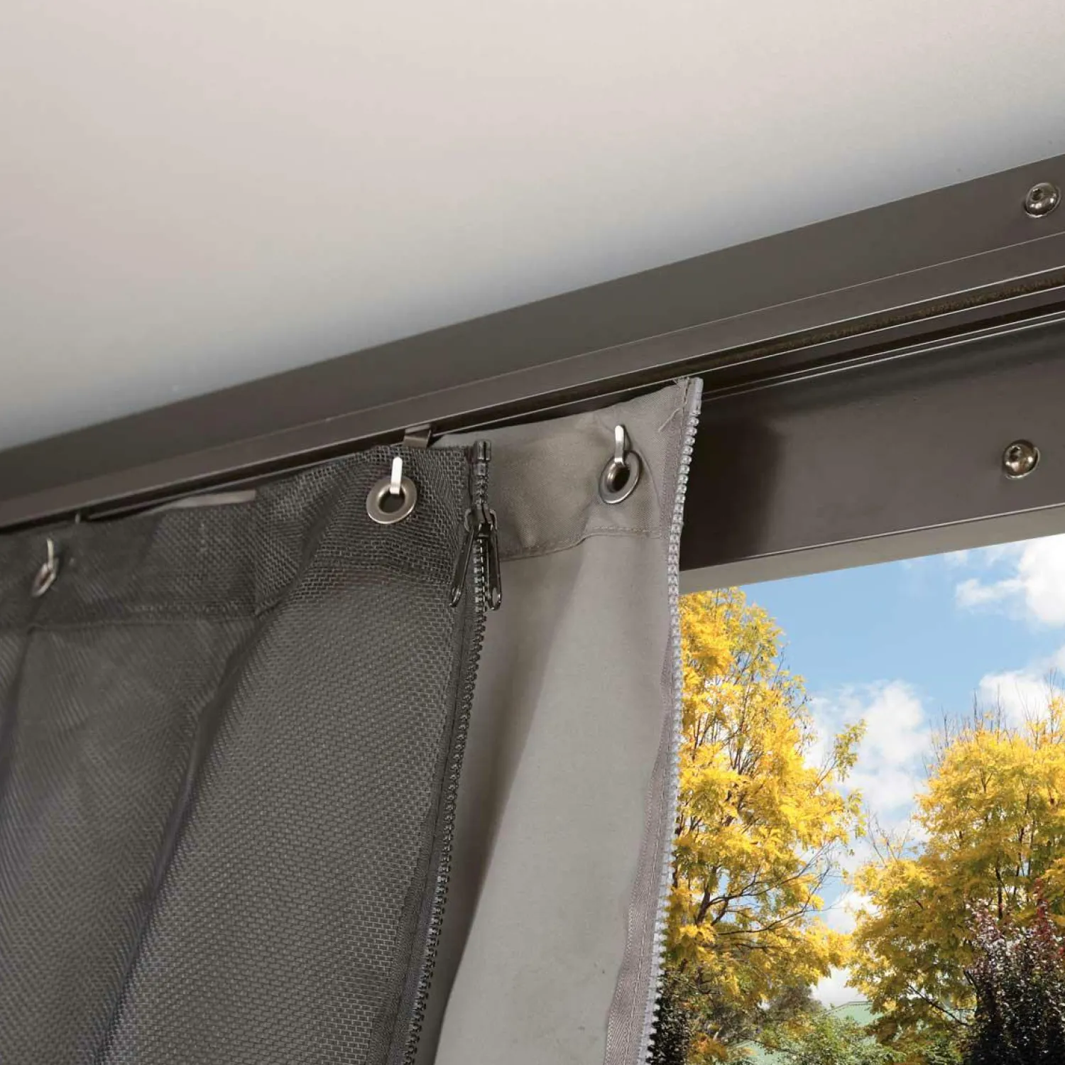 - Discreet two-track system makes it easy to attach mosquito net and separately sold privacy curtains