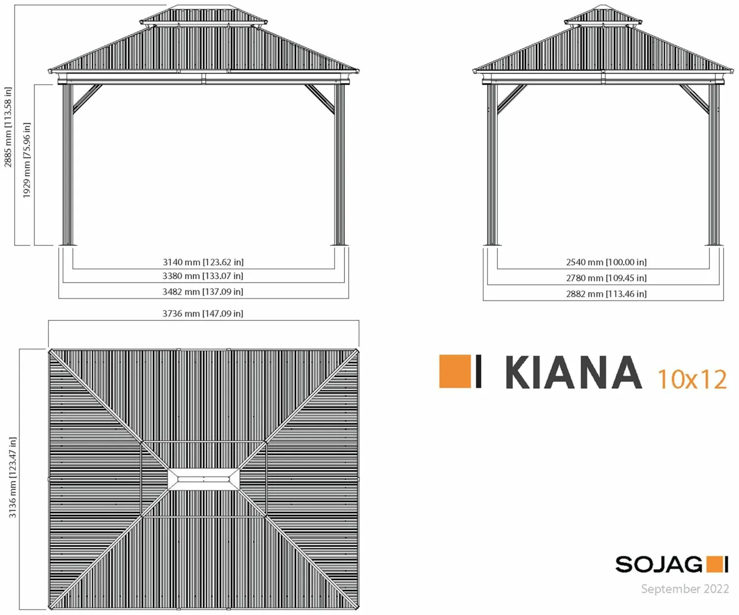 Sojag’s Kiana 10 x 12 ft. Rustproof Aluminum Frame Gazebo will transform your outdoor living space into a shaded oasis. Furthermore, its contemporary design will complement almost any backyard. A galvanized steel roof is powder coated making it scratch resistant and durable. The gazebo’s frame is made of aluminum, making it rustproof and highly corrosive resistant. Stainless steel screws are used to prevent rusting where parts are joined. High quality PVC-coated mesh mosquito netting is four times stronger than traditional nylon netting which means it will provide insect protection for years. Enhance your outdoor living situation today with Sojag’s Kiana 10 x 12 ft. Gazebo!