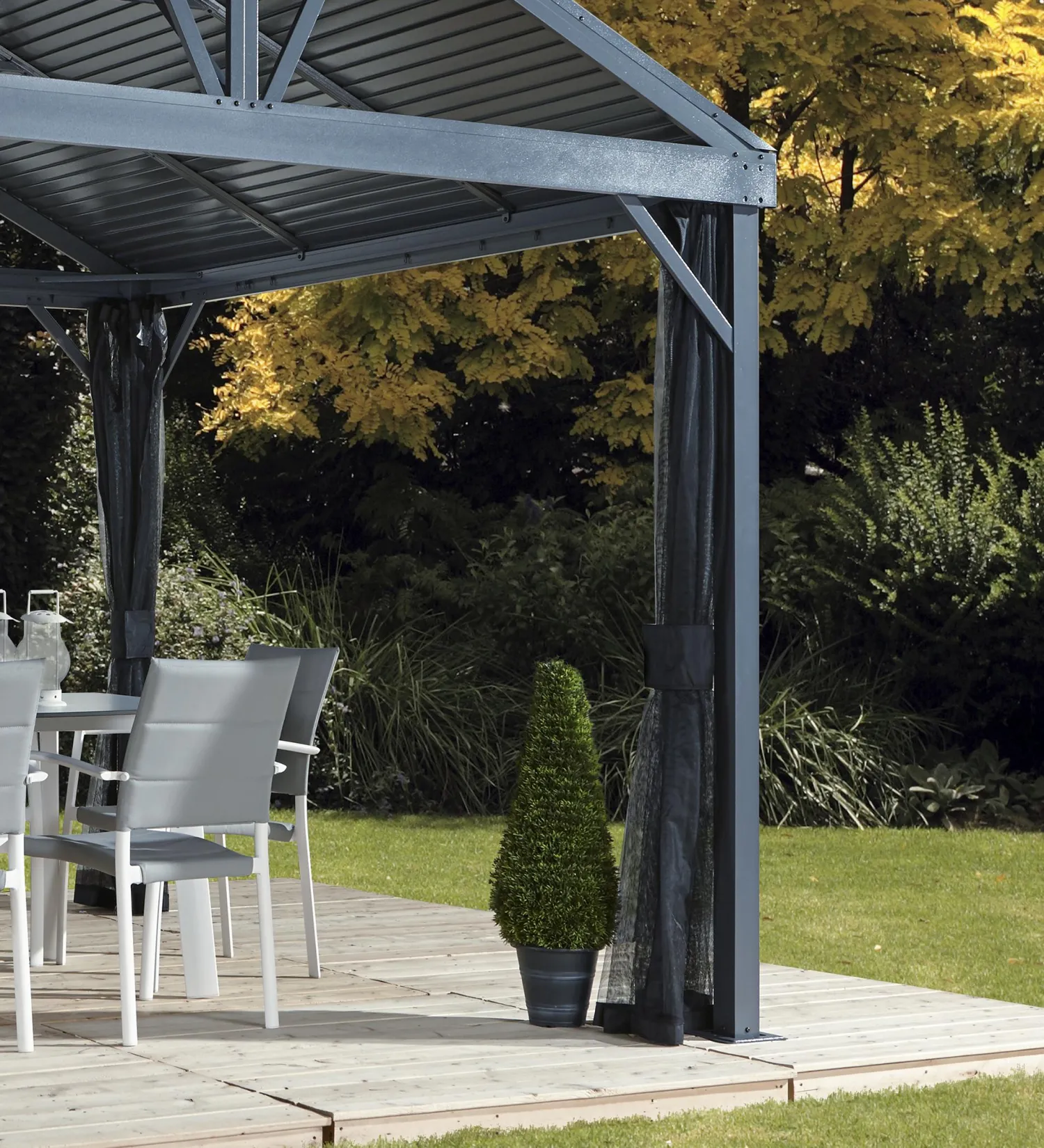 - Structure made of light grey powder coated aluminum