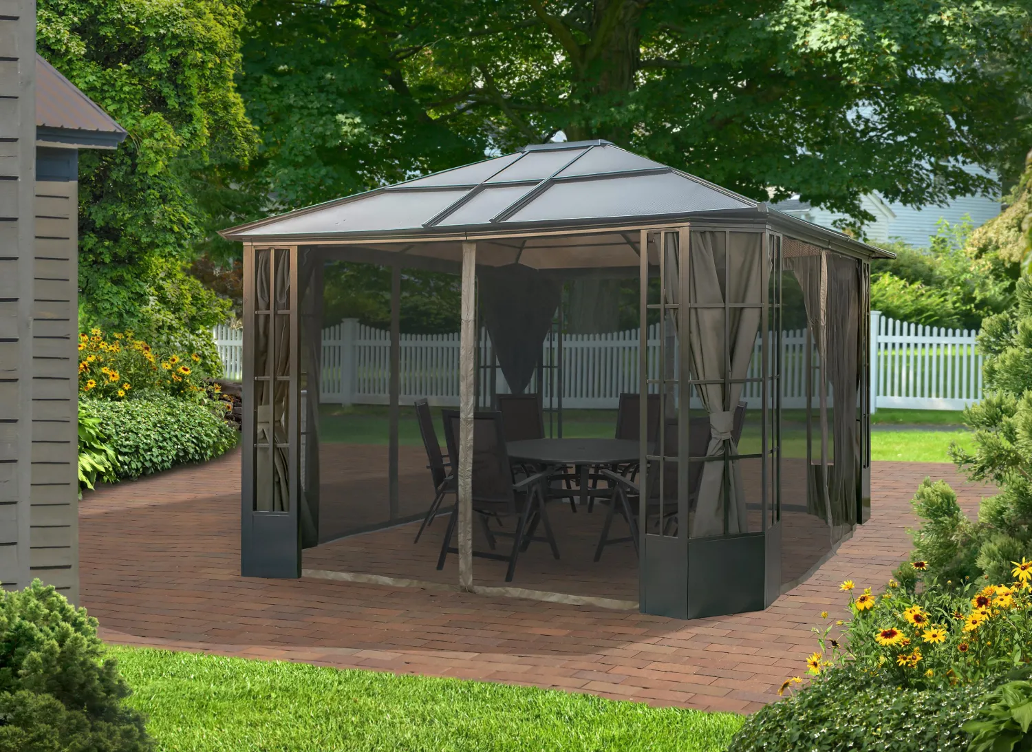 - OPTIMAL SHADE PROTECTION: Polycarbonate roof panels block harmful UV Rays while allowing natural light into the gazebo