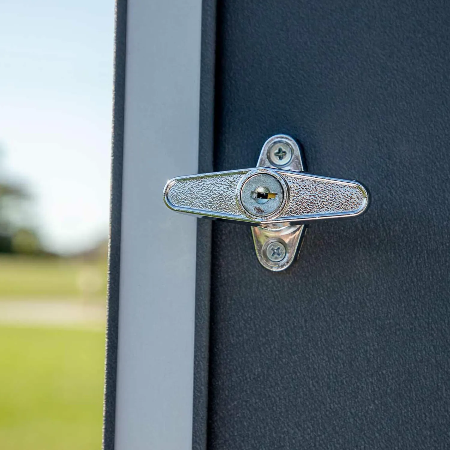 - DURABLE AND AESTHETICALLY APPEALING – This steel storage shed has a Wrinkle Paint textured finish in Anthracite. This finish is not only appealing but offers increased resistance against harmful weather and corrosion.