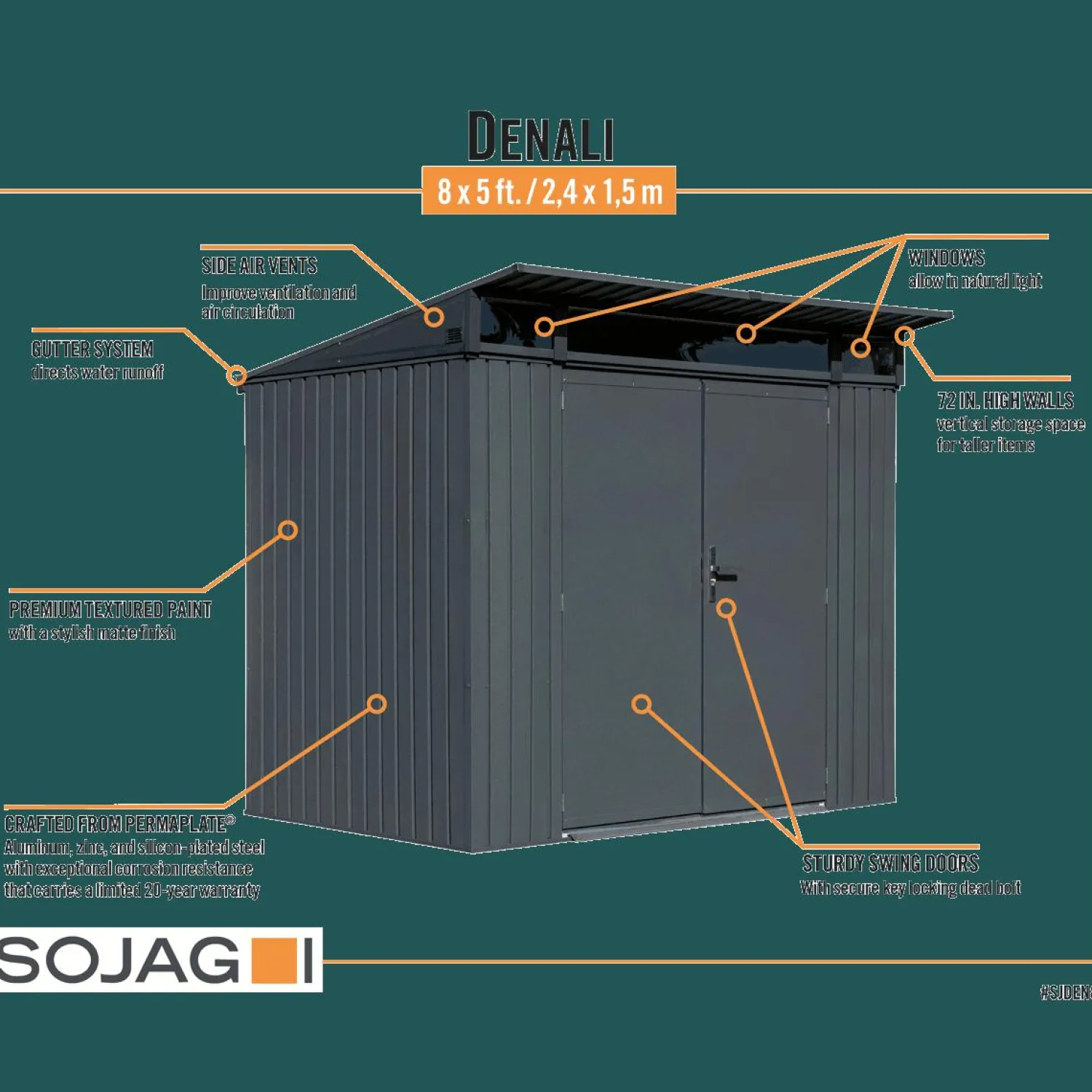 Sojag Metal Sheds-Denali Steel Storage Shed, 8 ft. x 5 ft. Anthracite