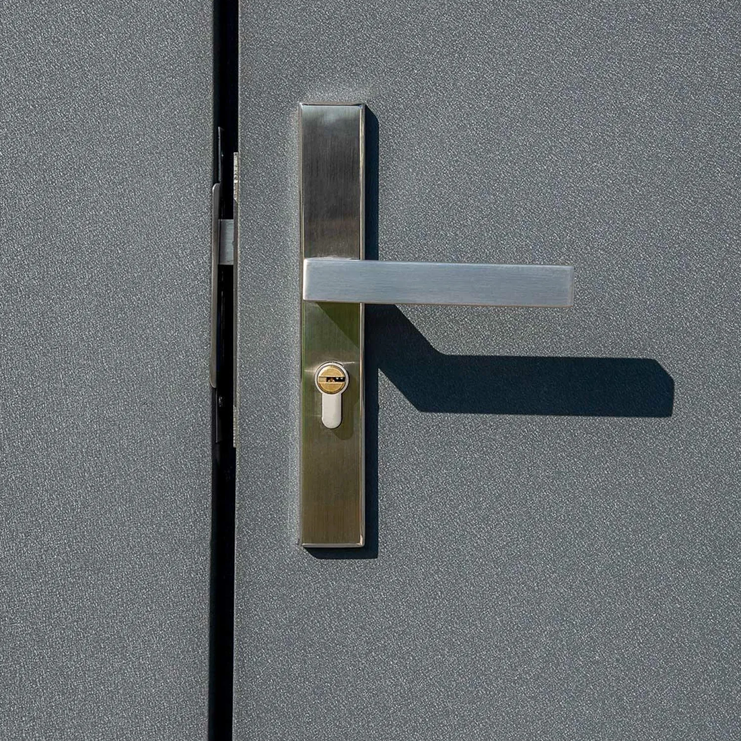 - CONTEMPORARY DESIGN – The new squared wall panel design of this steel shed gives a modern clean appearance. The sturdy reinforced, wide swing doors included a squared off brush nickel handle with a key lock protecting your items when not needed