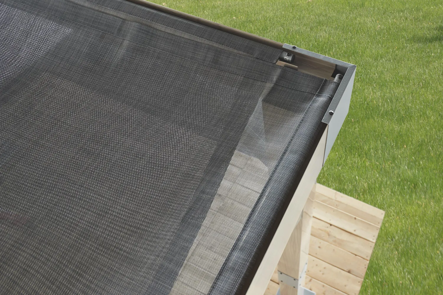 - SHADE: Canopy made of grey PVC-coated polyester that is highly durable and resilient against sun damage