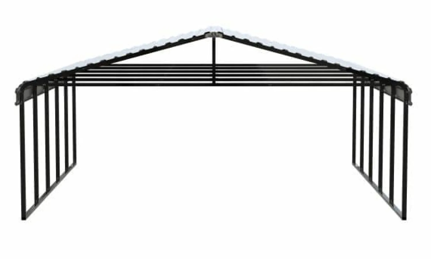 The all-steel Arrow Carport, all-weather shade and shelter solution that’s versatile and practical. Use the Carport to shade your vehicle, truck, ATV, outdoor equipment, rest areas or picnic areas. Great for storing boats, picnic and outdoor furniture and summer toys in the off-season. Each Arrow Carport is wind and snow load rated, designed to take on tough weather conditions and stand up to accumulated snowfall. Its galvanized steel roof is made to protect against corrosion, rust, and the elements and features an attractive roof with a Charcoal finish. The Carport is assembled on a tough all-steel, 2 in. tube frame, made to reinforce stability and strength in the structure, and has a powder-coated finish that resists corrosion and rust. Easy to install, the Carport comes with slip-fit connections with pilot holes and self-drilling screws making this unit easy to build straight out of the box.