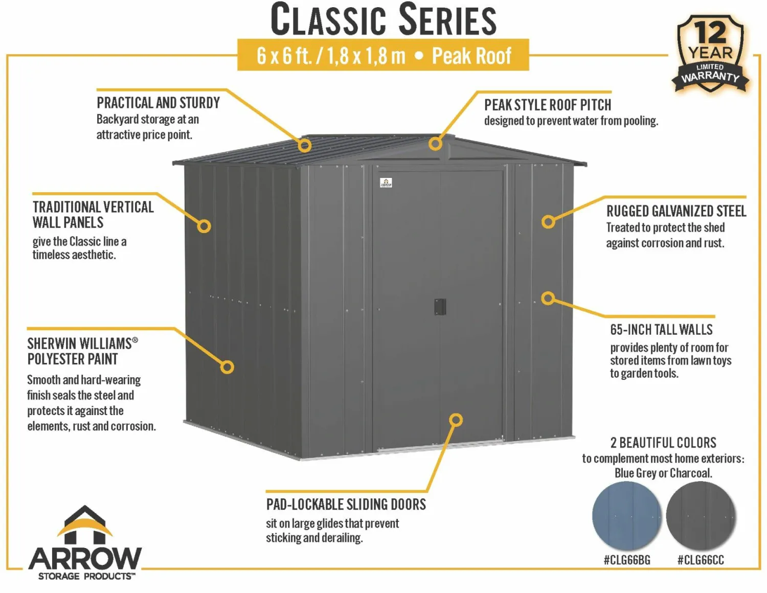 Arrow Metal Sheds-6 x 6 x 6 ft Grey Shed