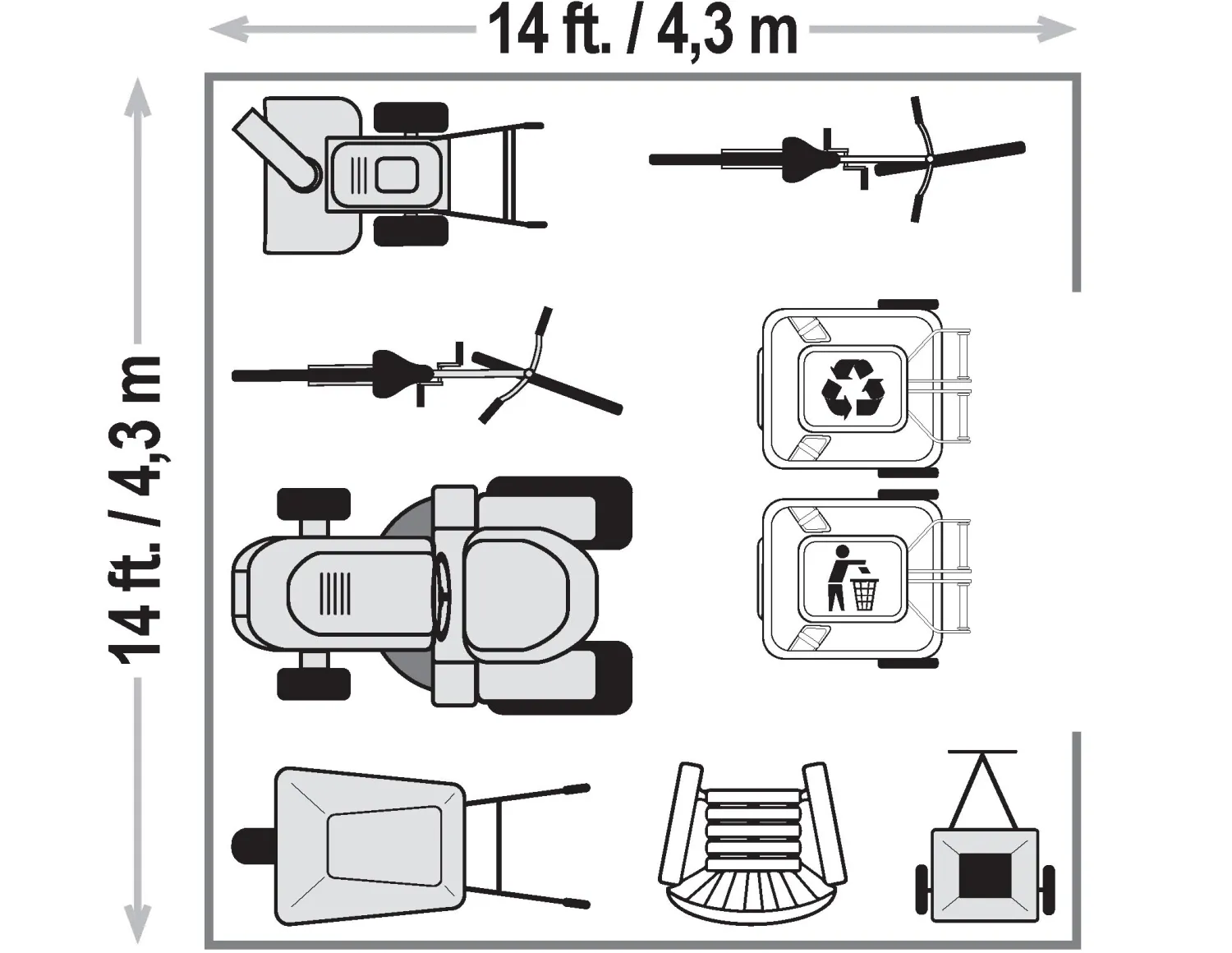 - 82 in. tall walls provide easy access to stored items from lawn mowers to garden tools