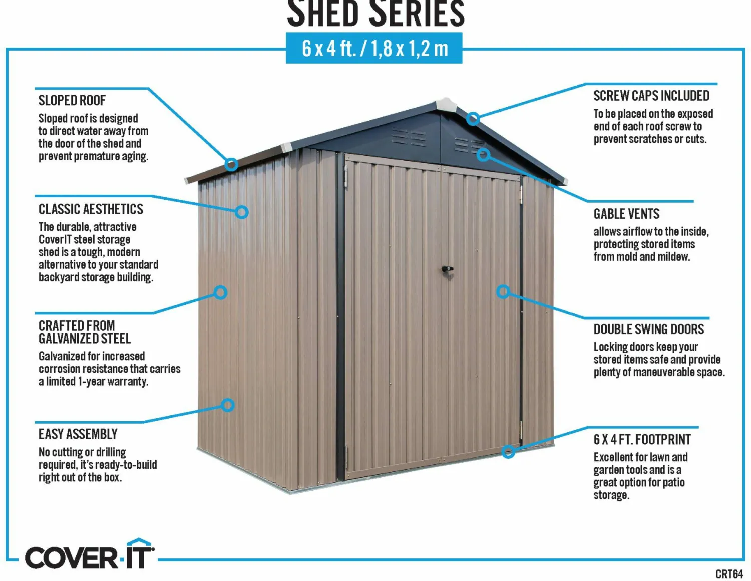 - The shed is made with galvanized steel for advanced corrosion resistance