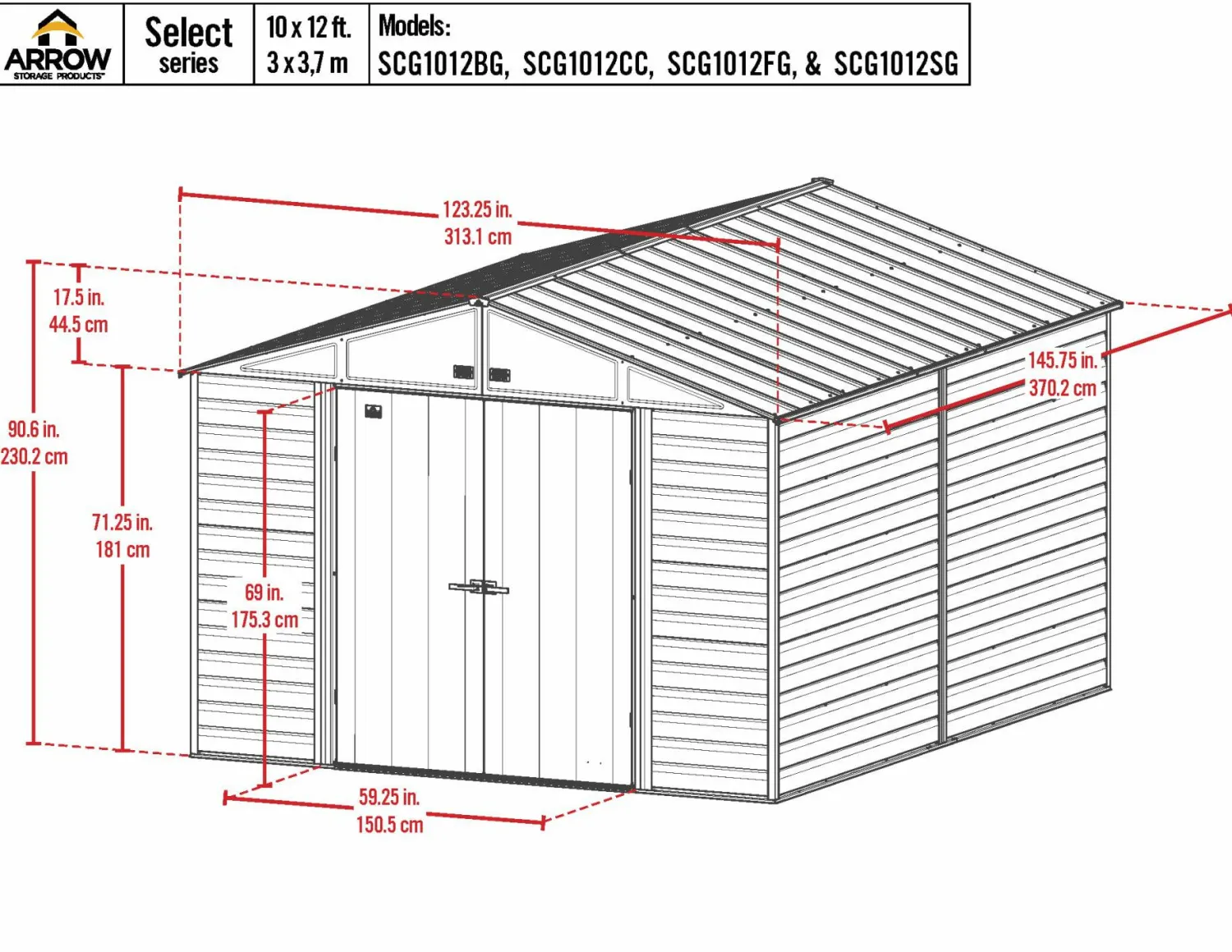 The Arrow line of strong, sturdy steel storage sheds is a pleasant addition to your backyard. Made with galvanized steel that is treated to provide long-term protection against corrosion and rust, Arrow sheds are engineered to protect your stored items from the elements. Inside, the 71 in. walls provide extra headroom, vertical storage space, and added entryway clearance. That makes it great for storing ladders, rakes, pole saws, and anything you want to pile high. The Arrow line also has a high gable roof to prevent pooling of rainwater and debris, built-in air vents for better circulation, and locking door handles for security. It also has a smooth, strong Sherwin-Williams Paint Finish that protects it from the elements and gives the steel extra protection from rust and corrosion.