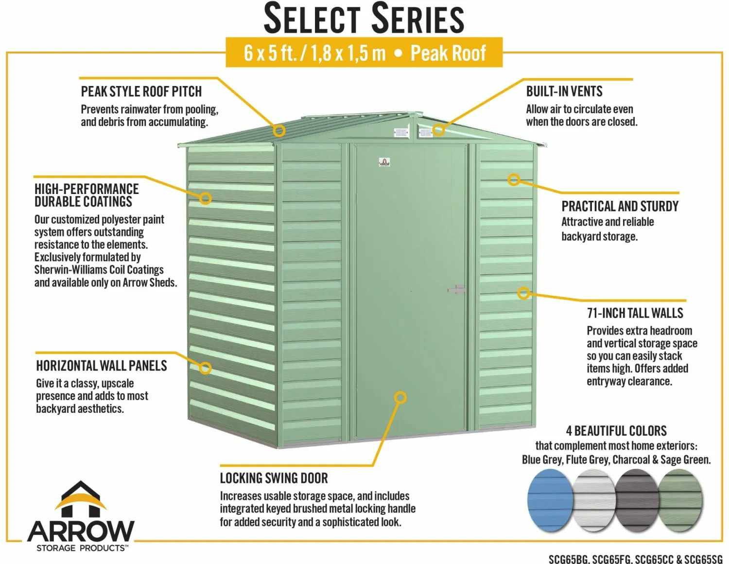 Arrow Metal Sheds-Select 6 x 5 x 7 ft Green Shed