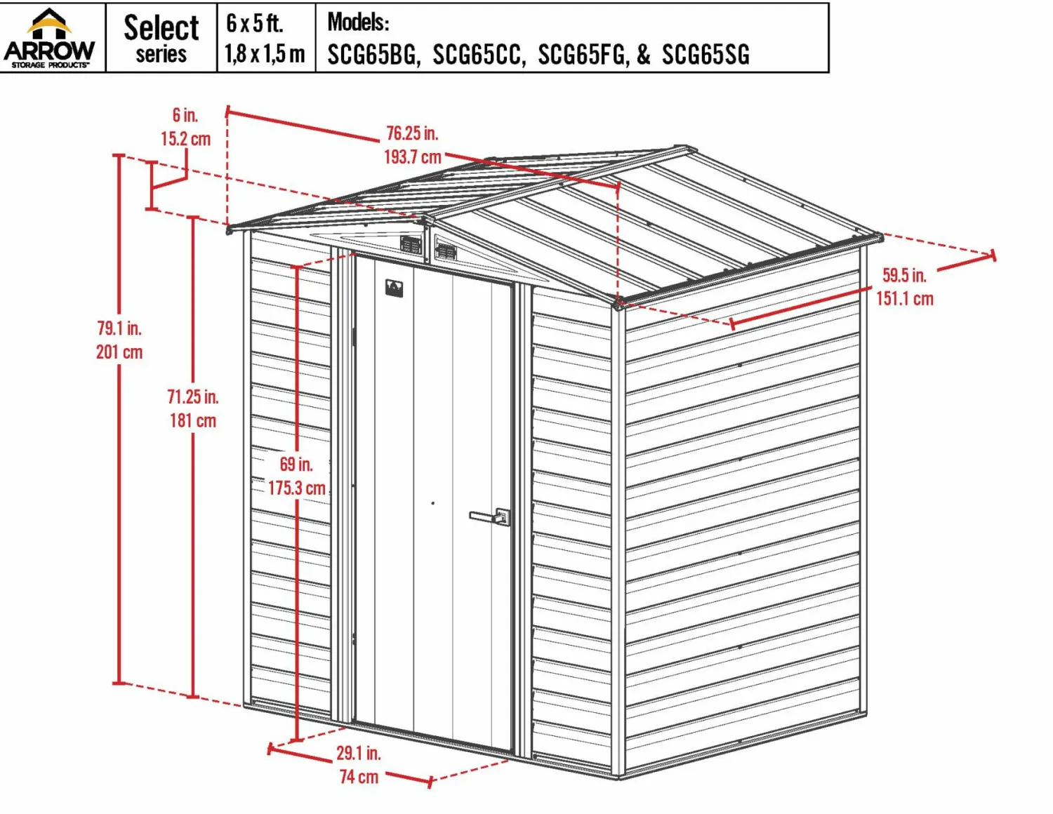 The Arrow line of strong, sturdy steel storage sheds is a pleasant addition to your backyard. Made with galvanized steel that is treated to provide long-term protection against corrosion and rust, Arrow sheds are engineered to protect your stored items from the elements. Inside, the 71 in. walls provide extra headroom, vertical storage space, and added entryway clearance. That makes it great for storing ladders, rakes, pole saws, and anything you want to pile high. The Arrow line also has a pitched roof to prevent pooling of rainwater and debris, built-in air vents for better circulation, and locking door handles for security. It also has a smooth, strong Sherwin-Williams Paint Finish that protects it from the elements and gives the steel extra protection from rust and corrosion.