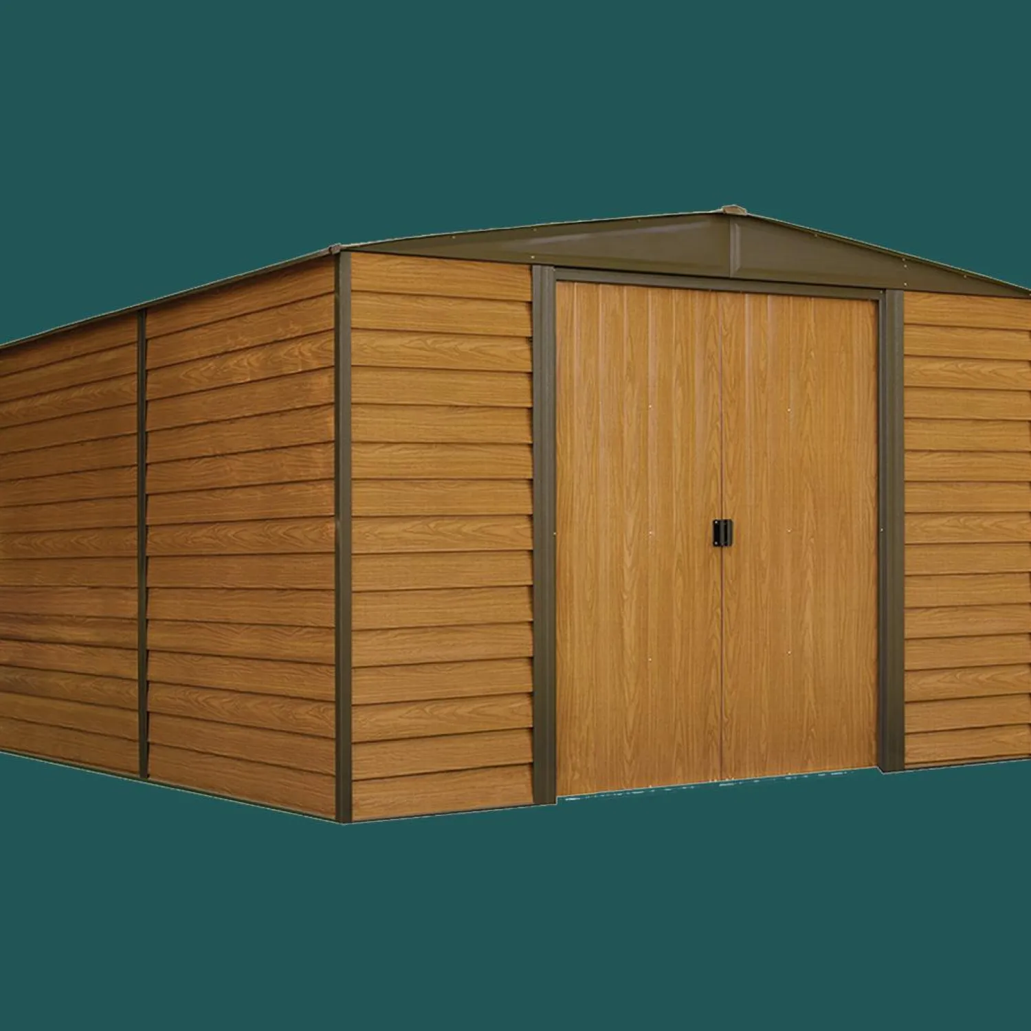 Looking for a steel shed for outdoor storage that will match your backyard space effortlessly? The Woodridge 10 x 12 ft. shed might be the perfect solution. This attractive galvanized steel shed is not only built strong, but it features and attractive wood grain exterior that’s bound to match any outdoor space. Any unlike other wood grain finishes, the Woodridge looks attractive and not at all fake. Made from galvanized steel, this attractive shed offers corrosion and rust resistance. It’s also resistant to damage from outdoor critters and insects due to its sturdy, durable building material. Store your outdoor items in a Woodridge 10 x 12 ft. series shed, perfect for backyard and lawn equipment and much more.