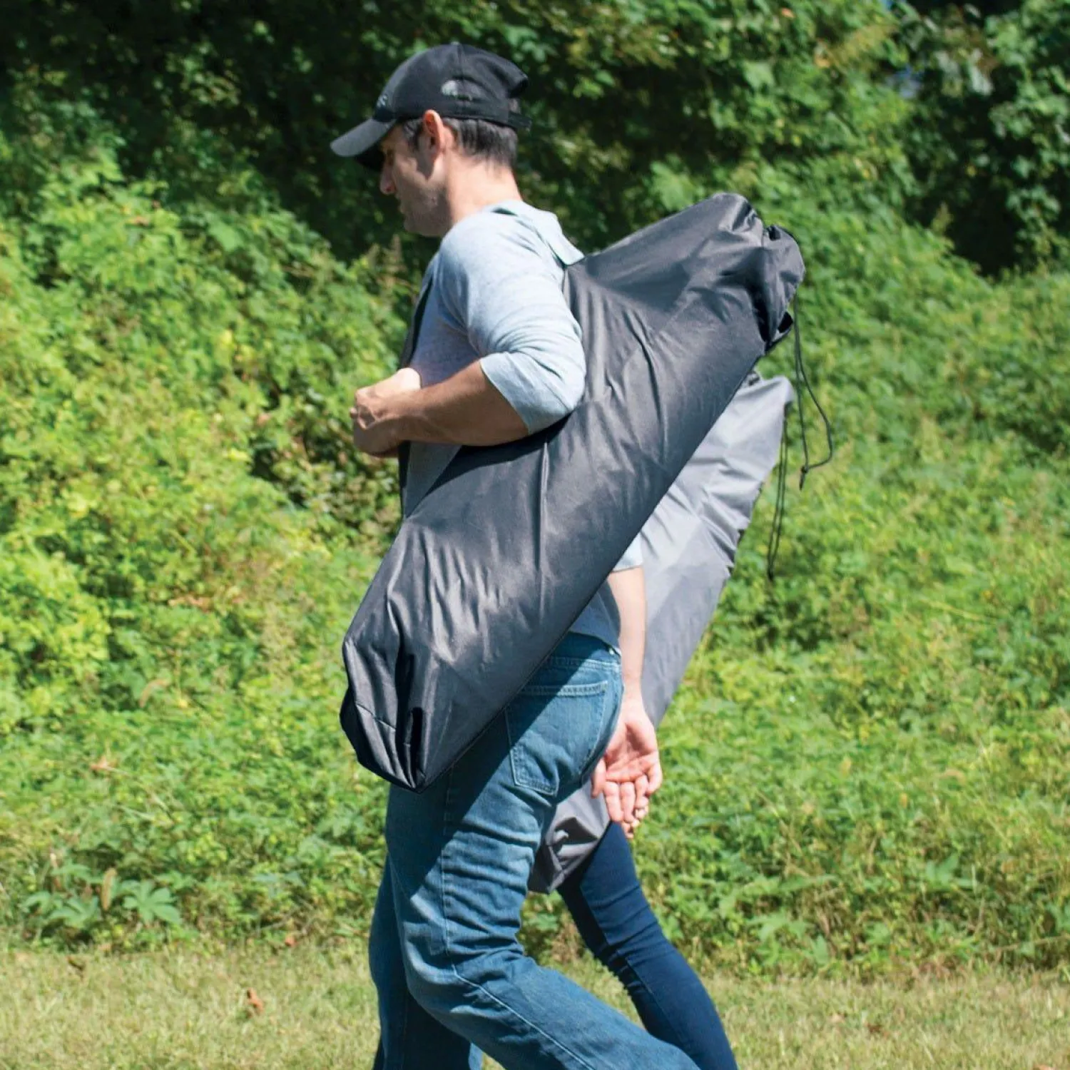 Swing free like the breeze! The New Hammock Lounger lets you relax hammock style in your backyard or on your next camping or fishing trip. Its light weight and compact design makes for easy, efficient transport and storage in its complimentary carry bag. The lounger has a durable powder coated steel frame and a rugged, breathable polyester fabric seat cover.