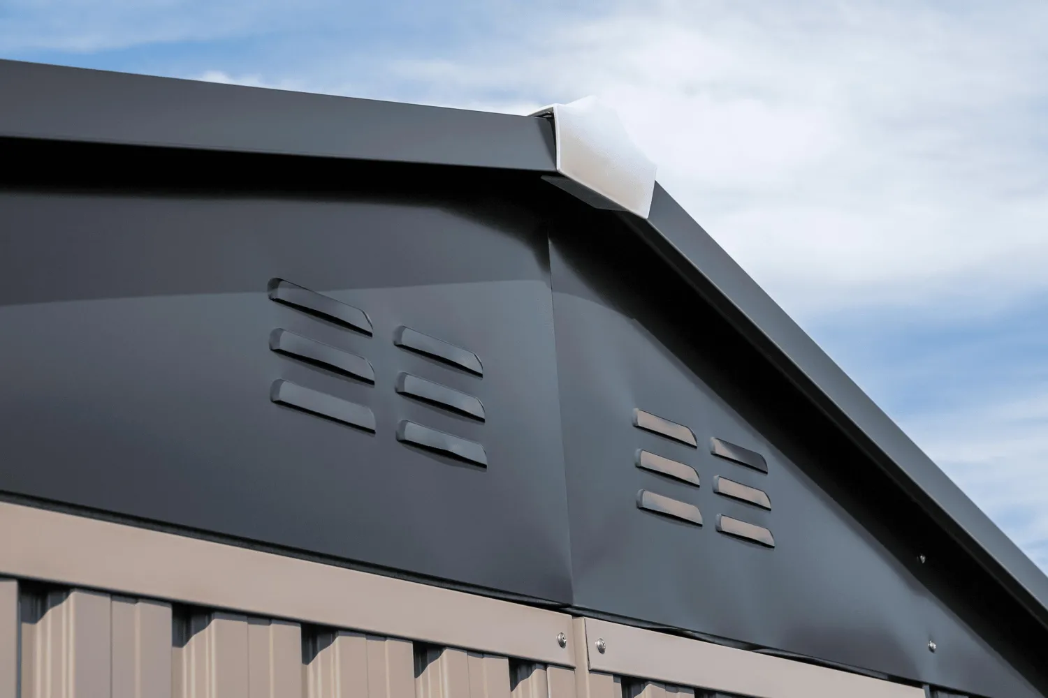The Cover-It steel shed is a practical, attractive, and sturdy storage unit for your backyard. The shed is made of galvanized steel that’s treated to prevent rust and corrosion, and it has a sloped roof that’s designed to direct water runoff away from the entrance and gable vents to provide sufficient airflow. This timeless-looking shed can be locked to keep stored items safe and secure.