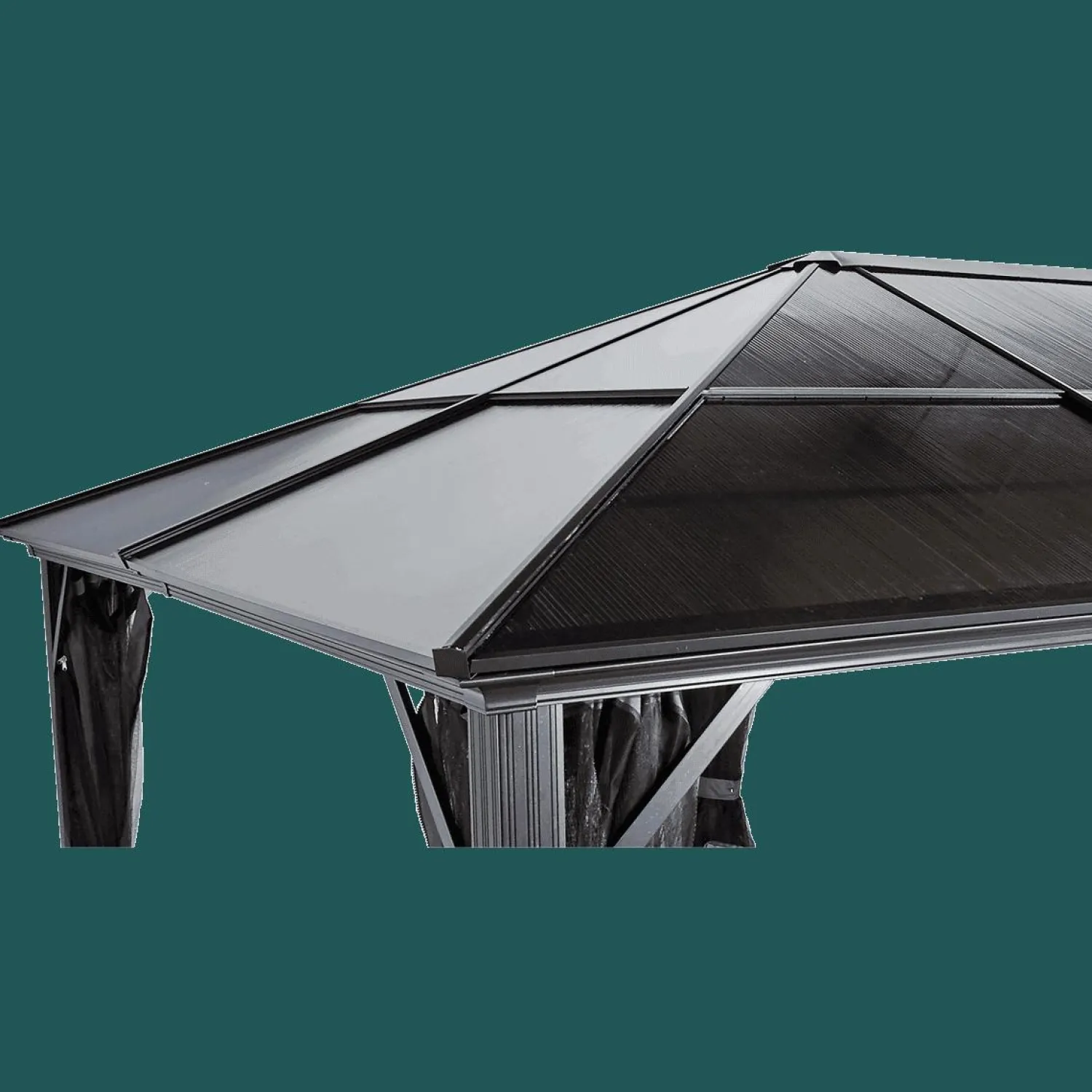 - Roof made of 8 mm (0.3 in.) UV protected tinted polycarbonate panels