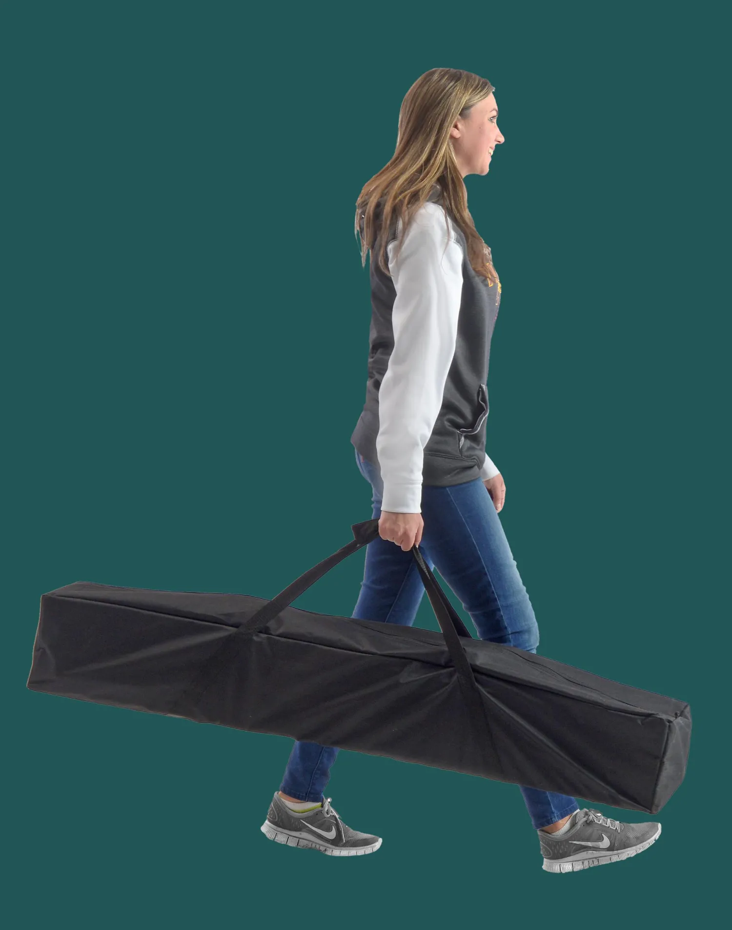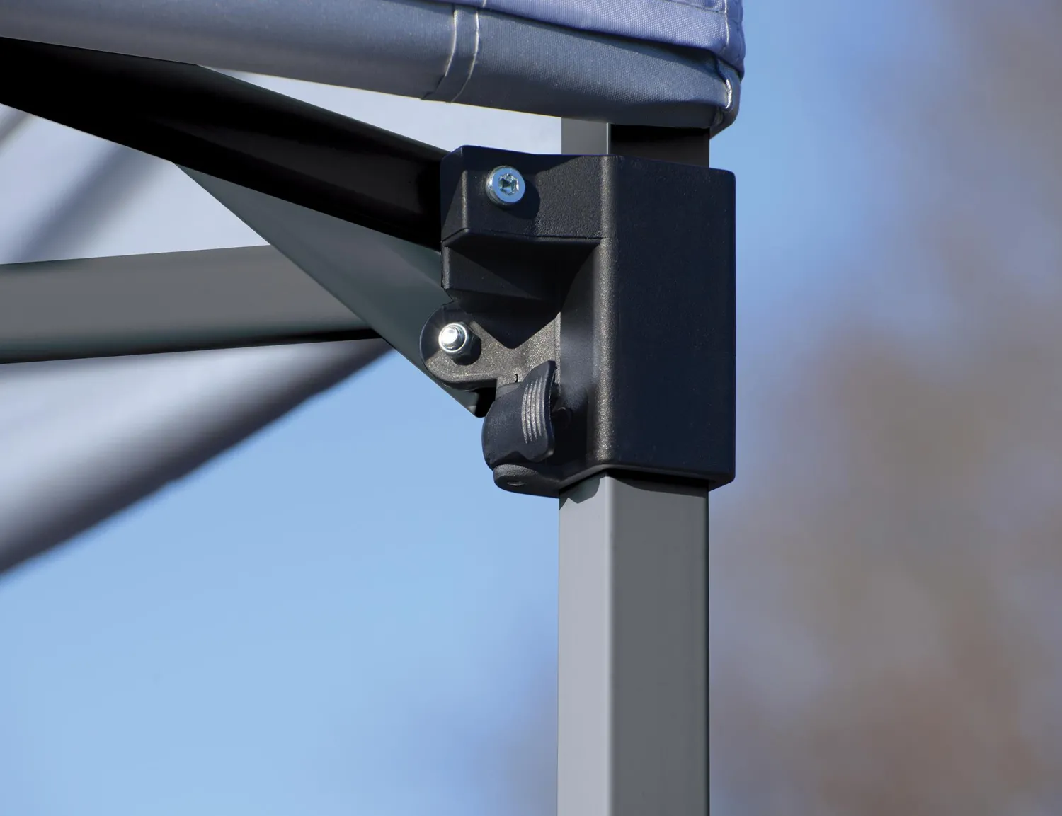 Quik Shade’s slant leg Expedition pop-up canopy tent provides shade under an attractive slant leg canopy. This durable canopy features patented overlapping eaves and thru-bolt reinforced assembly to maintain the structural integrity of your shade. The 150D polyester top with Aluminex gives you 99% UV protection for quality shade at farmer’s markets, sports events, and much more.