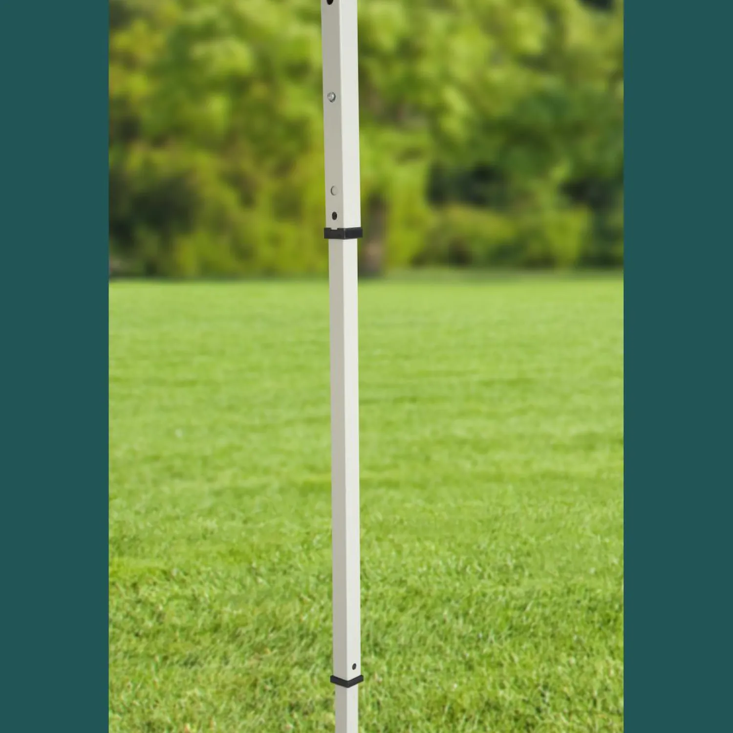 The Marketplace 10 x 10 ft. straight leg canopy provides up to 100 sq. ft. of reliable shade for your next outdoor event, picnic or simply your backyard space. Get great shade made from reliable, top quality materials from Quik Shade. Features hardened thru-bolt assembly, 3 height positions and a durable 300D polyester top with Aluminex for 99% UV protection. Comes with 4 ground stakes for anchoring and stability.