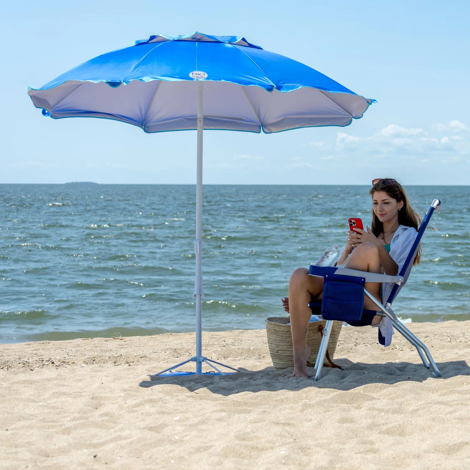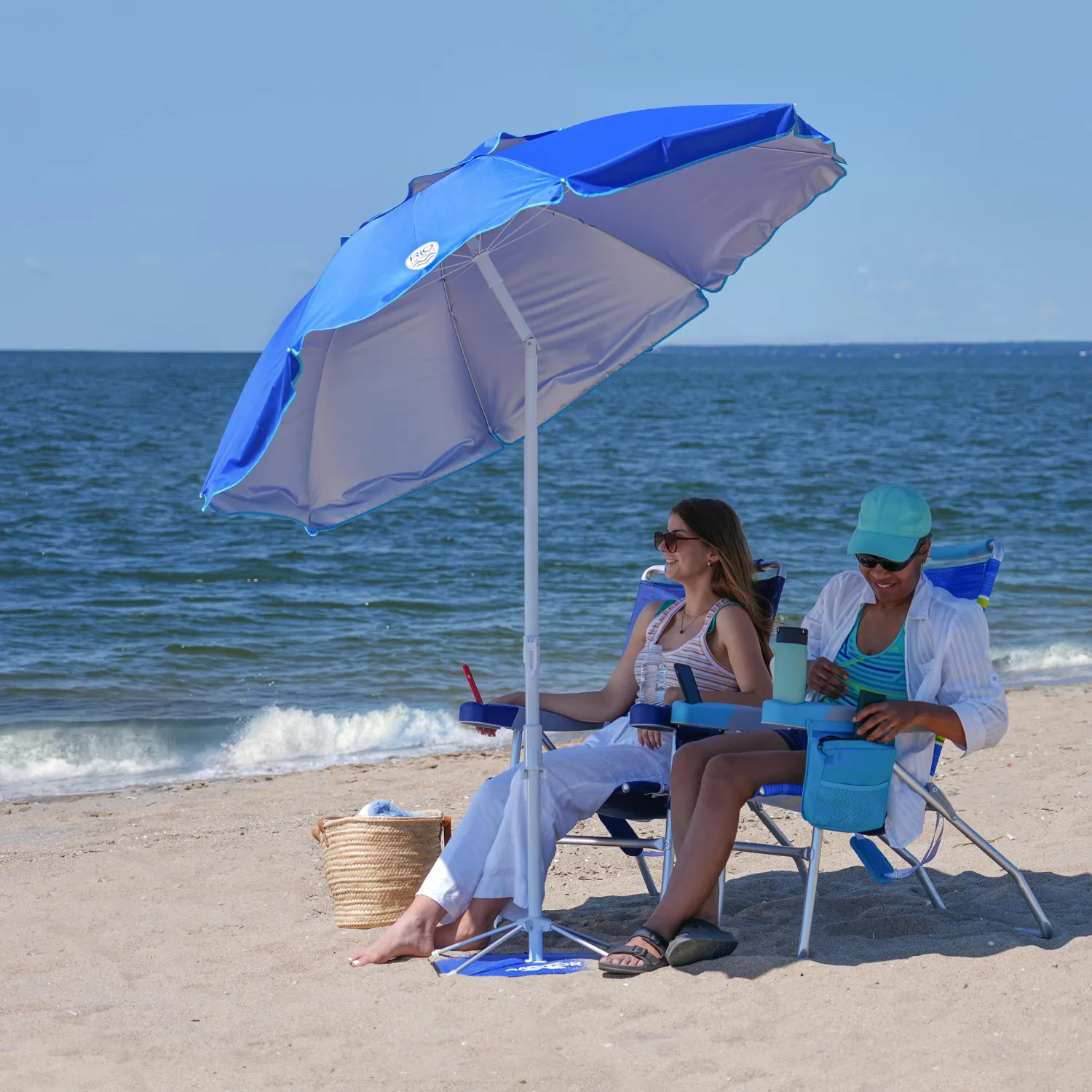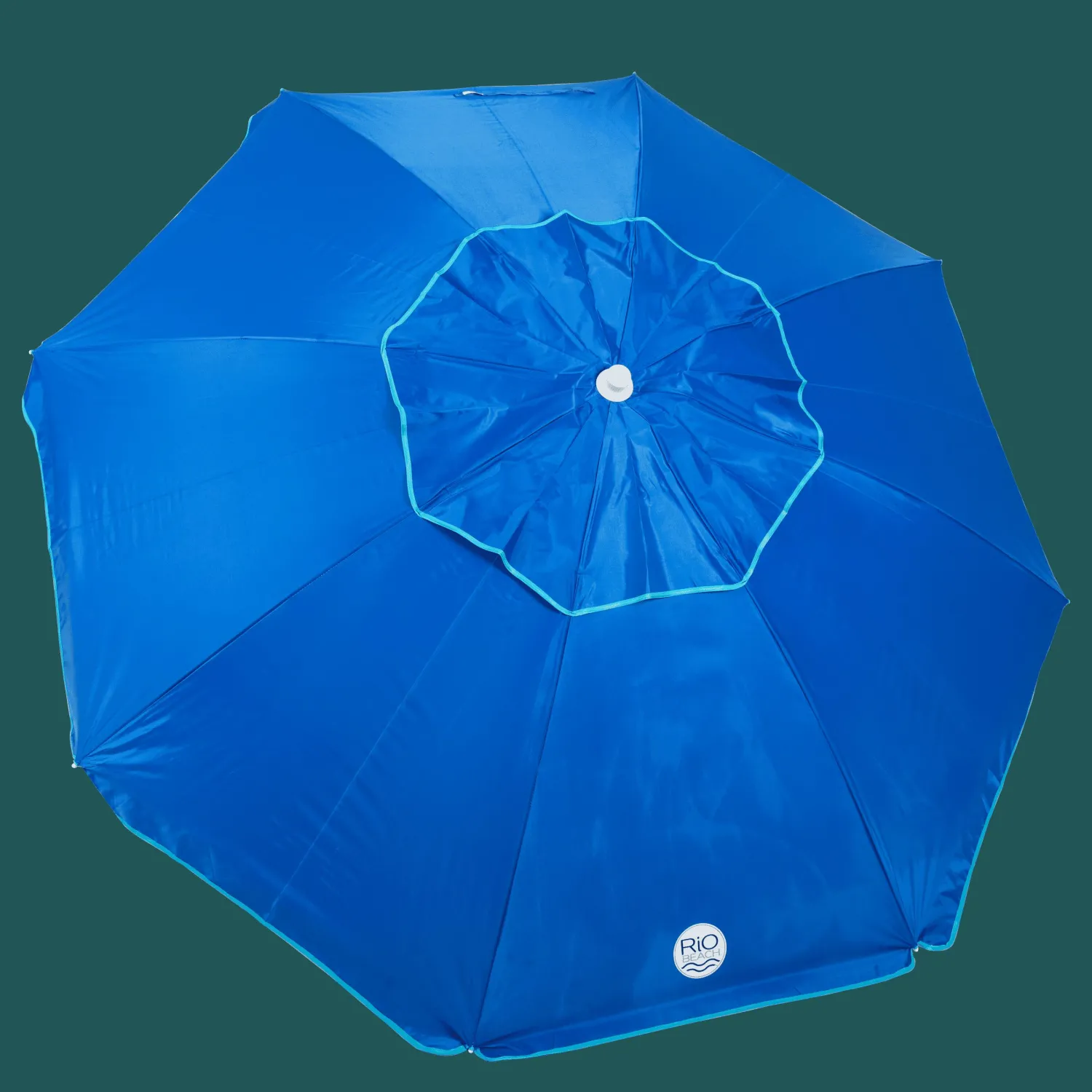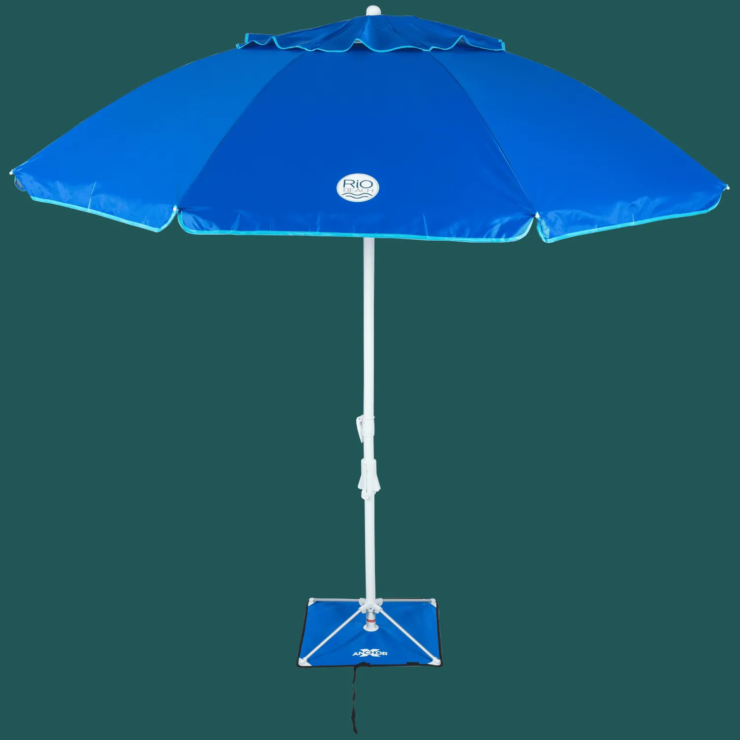 When you need a beach umbrella with style and ultimate durability, add the RIO BEACH 7 ft. Beach Umbrella with patent pending ANCHORX™ to your list of must-have outdoor accessories. This umbrella features added wind stability with the new ANCHORX™ system for windy beach days. The tilt feature offers the option to adjust shade as the sun moves. The powder coated steel pole fends off rust and corrosion to keep your umbrella performing in the elements. Recommended by the Skin Cancer Foundation, the polyester fabric is both durable and gorgeous for a stylish and functional beach accessory for all your outdoor adventures.