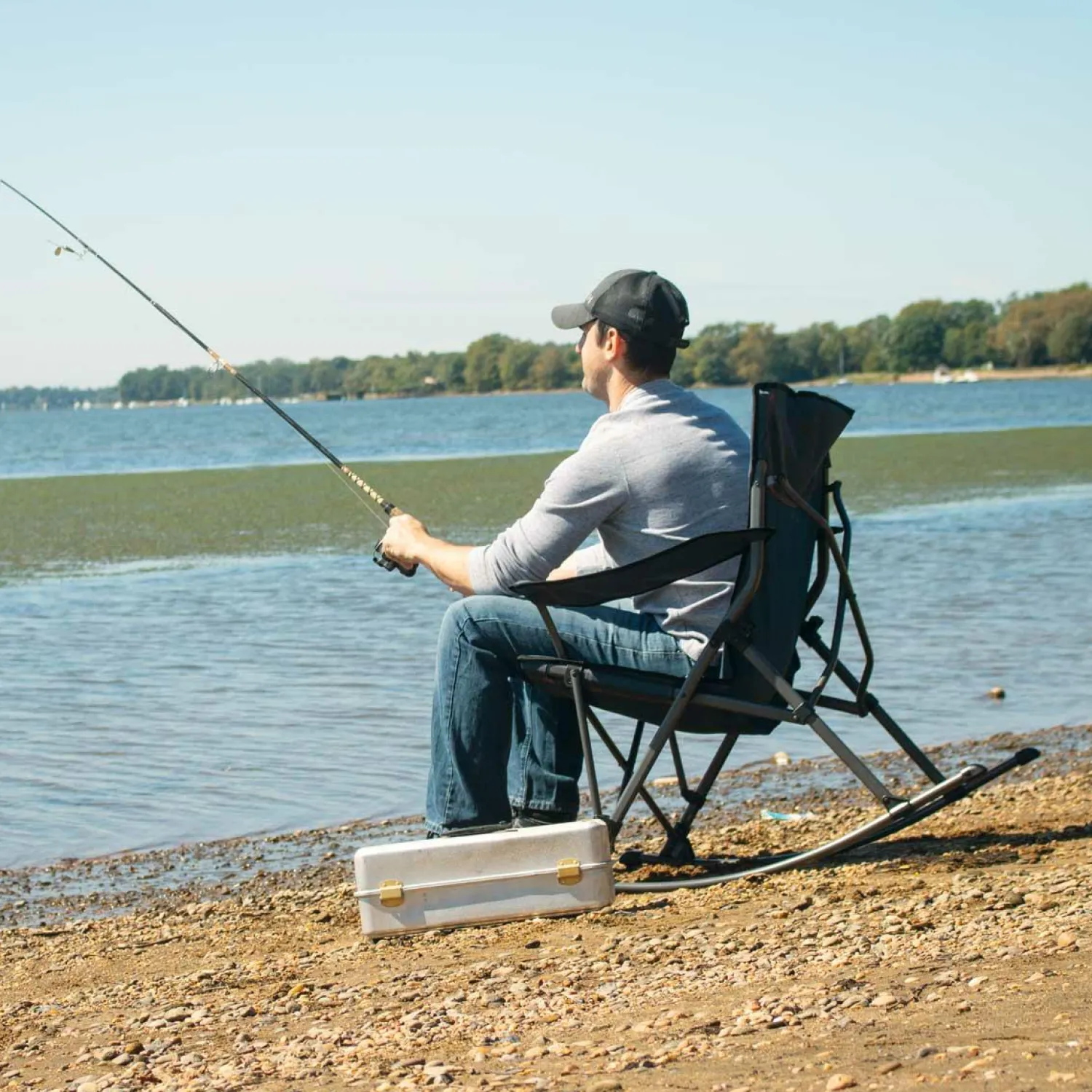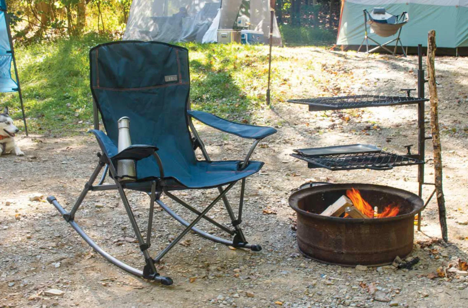 Rock the campground with the new Quad Rocker folding rocking chair. This rugged, portable rocker has a durable lightweight frame and a rugged, waterproof seat, back, and armrests. The soft arm quad rocker has compact design for easy, efficient transportation, and folds nicely for convenient storage in a carry bag. This stylish, tough rocker includes a cup holder that you can use for the beverage of your choice.