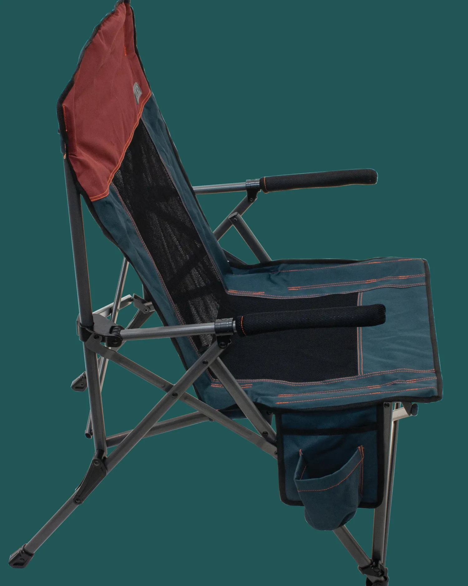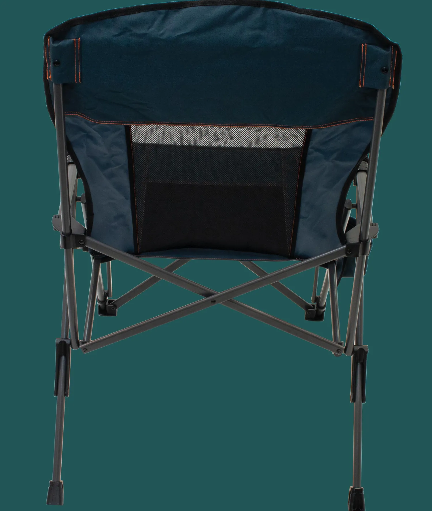 Have a comfortable seat outdoors with a compact, portable Hard-Armed XXL Comfort Quad Chair. This stylish portable chair is built for strength and convenience and is perfect for your next trip to the beach, park, campground, or backyard fire pit. The oversized chair features a durable rust-resistant powder coated steel frame, padded steel arms, and a rugged vented mesh seat back. An accessory pouch and a cup holder for cell phones, keys, and your beverage of choice is attached to the seat. The chair folds into a fabric carry bag for easy portability and storage.