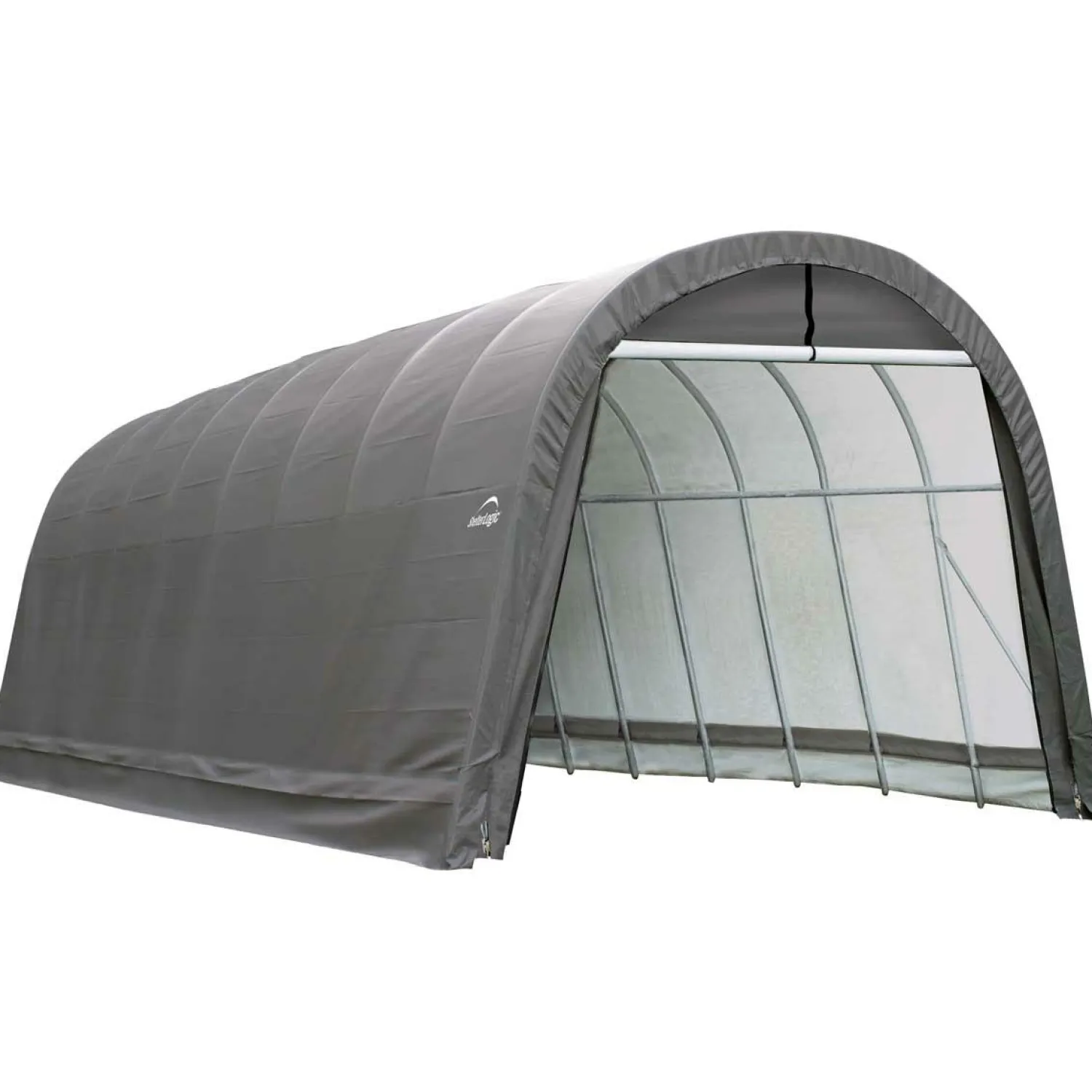 ShelterLogic Firewood Storage-Garage, 14 ft x 32 ft x 12 ft, Round, Gray