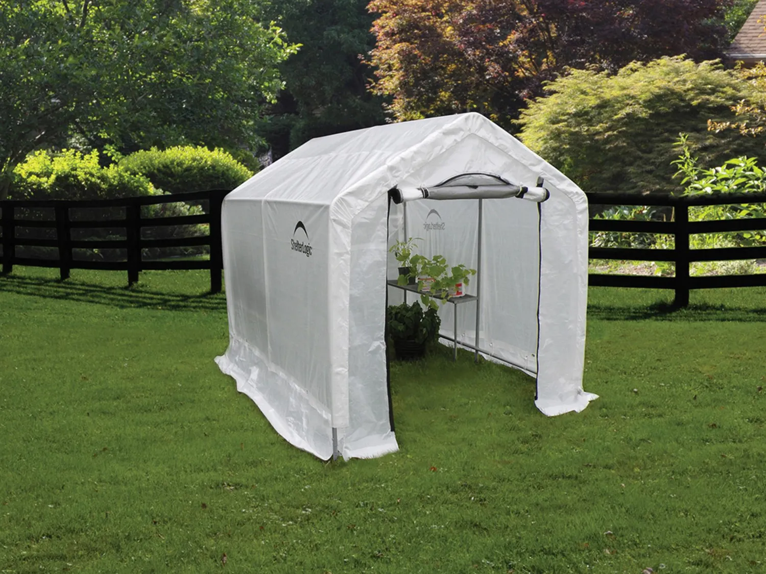 Practical, compact and easy to assemble: meet the GrowIT Backyard Greenhouse. Whether you’ve been growing plants for years, or you’re just getting started, the GrowIT greenhouse is great for backyard growing. Featuring ShelterLogic’s innovative trademark Luminate Diffusion Fabric, you’ll be able to grow quality plants faster. Extend your growing season by starting seedlings earlier, or keep them safe during the cooler months and protect them from frost. This Backyard Greenhouse maintains a temperate environment that retains heat and slows evaporation, so you’ll save water and grow strong plants, faster.