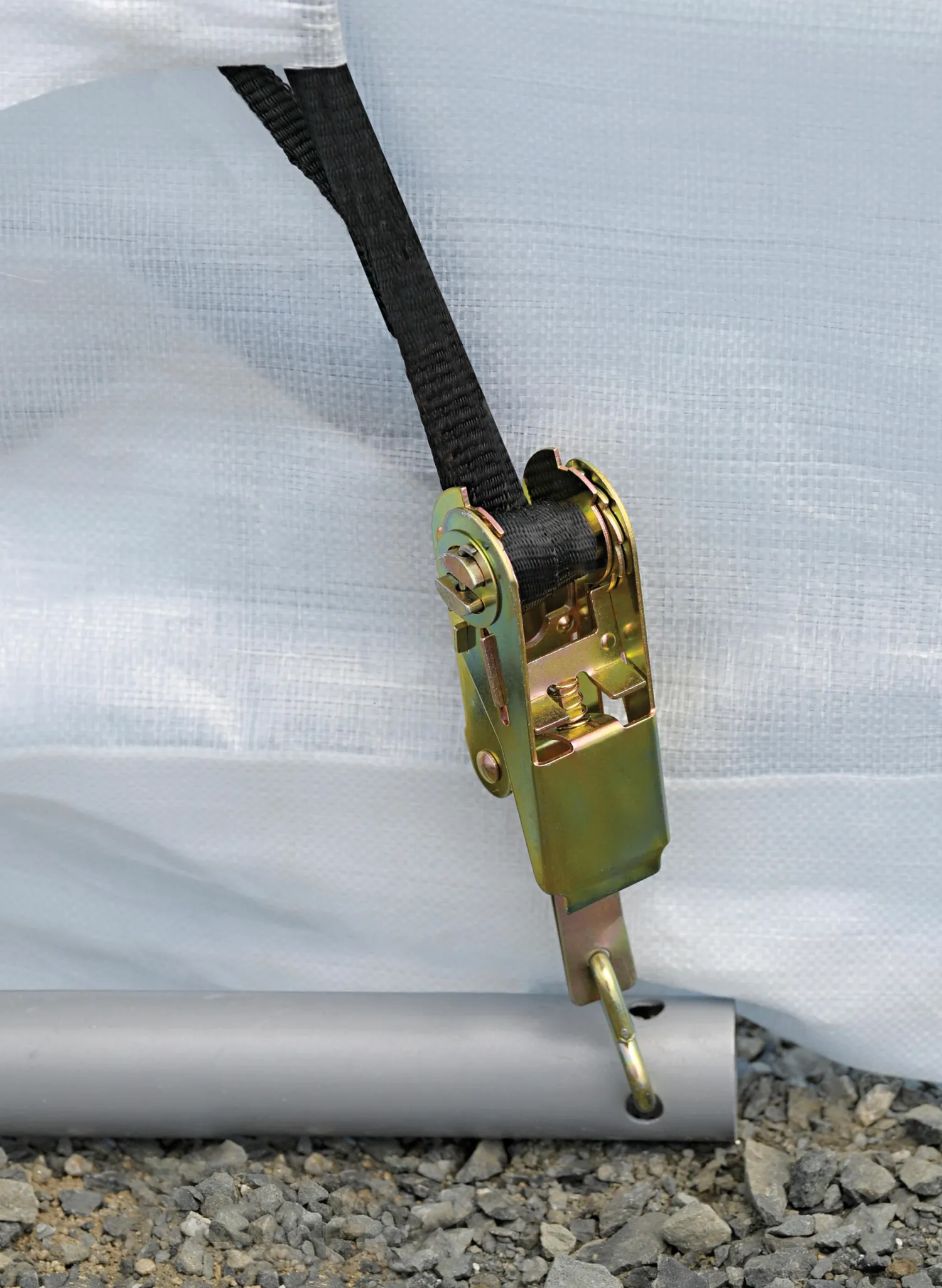 - Heavy duty 1 5/8 in. all-steel frame, patented ShelterLock Stabilizers, Ratchet Tite tensioning, and the Easy Slide Cross Rail System provide a stable and durable Greenhouse.
