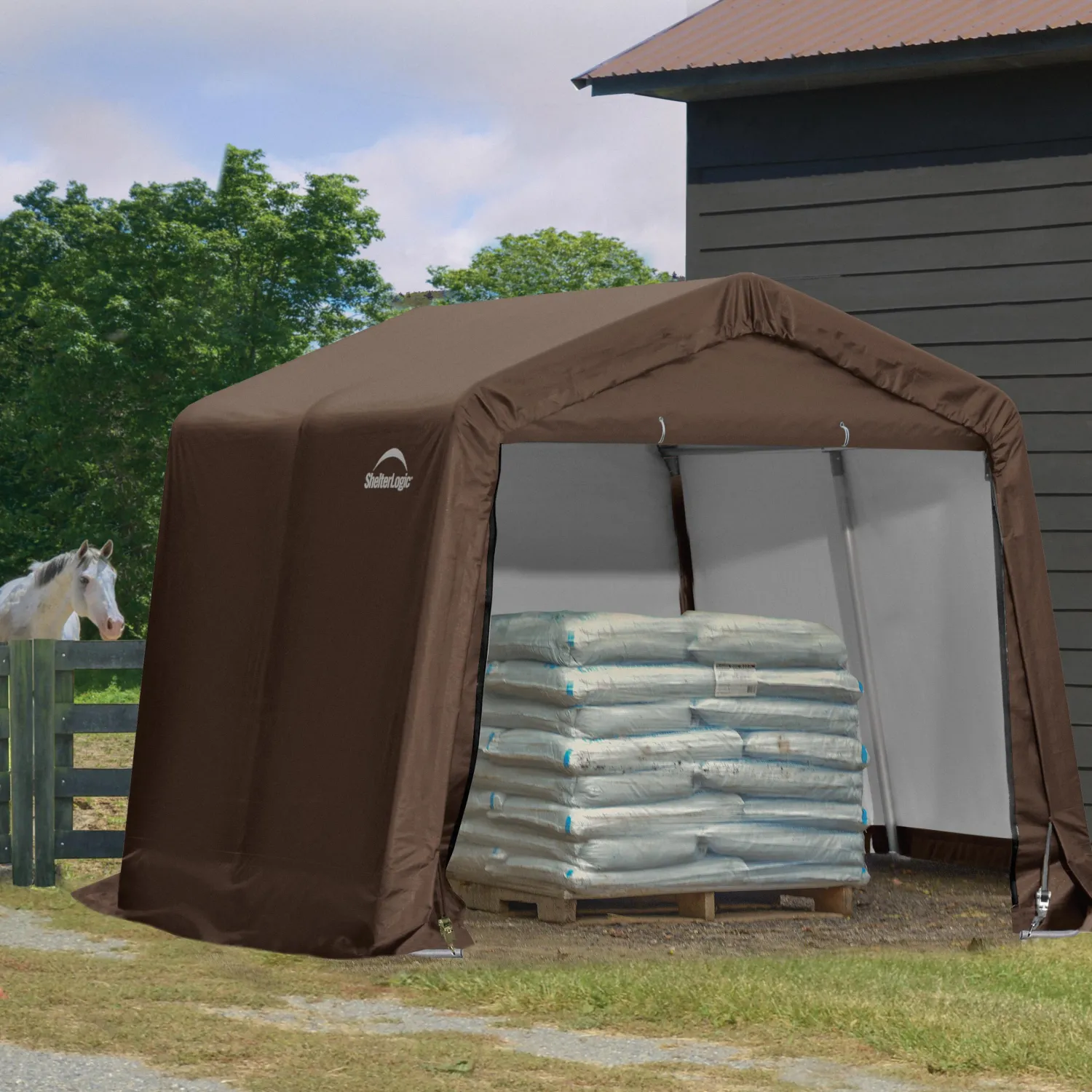 ShelterLogic Portable Sheds-10 x 10 x 8 ft Brown 3-in-1 Loafing Shed
